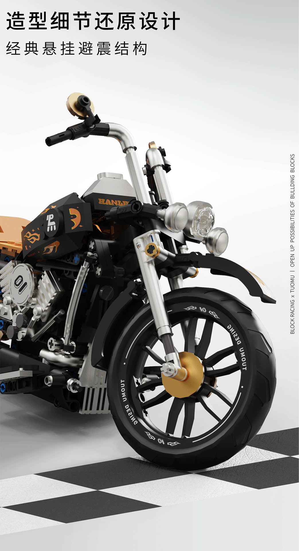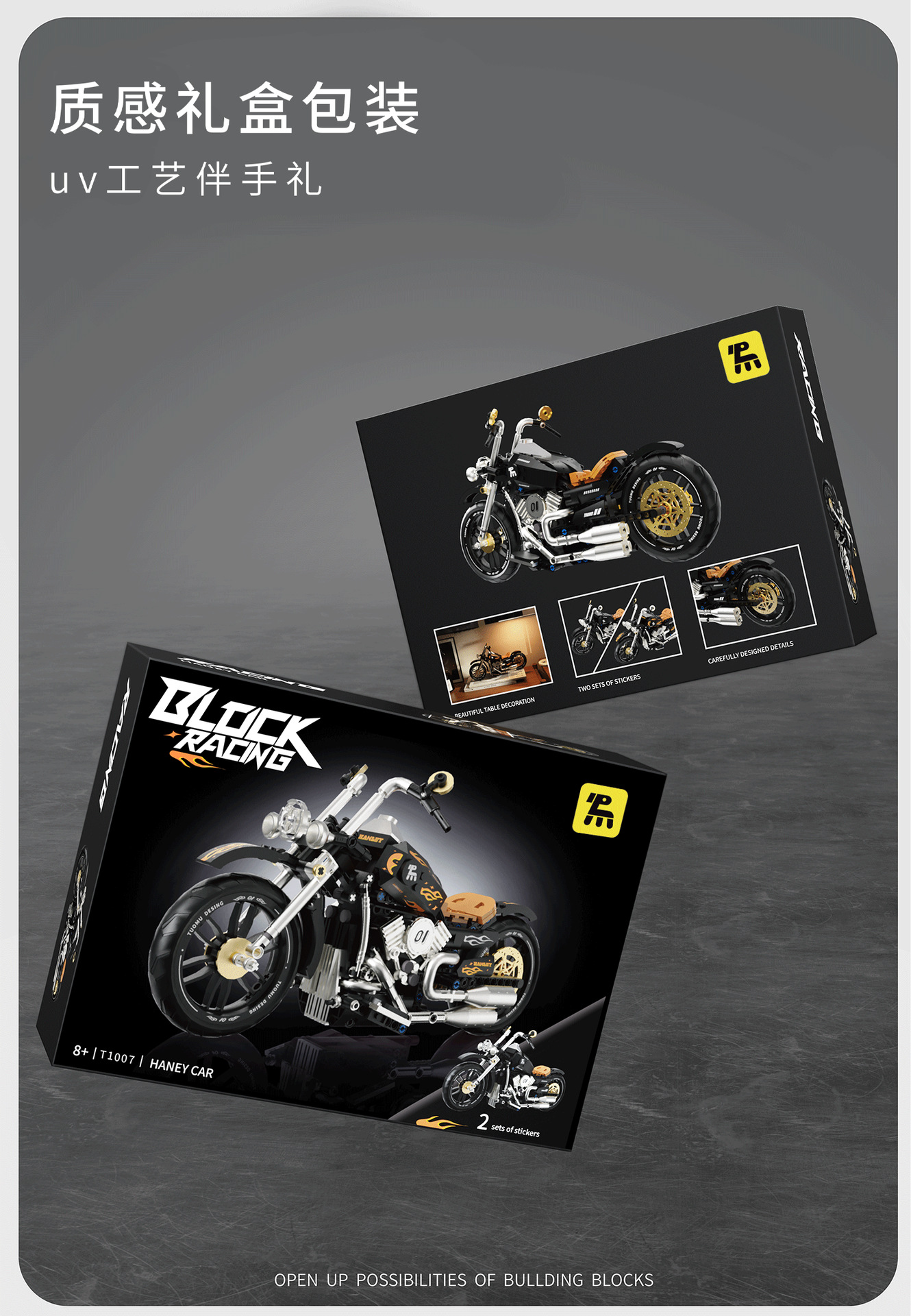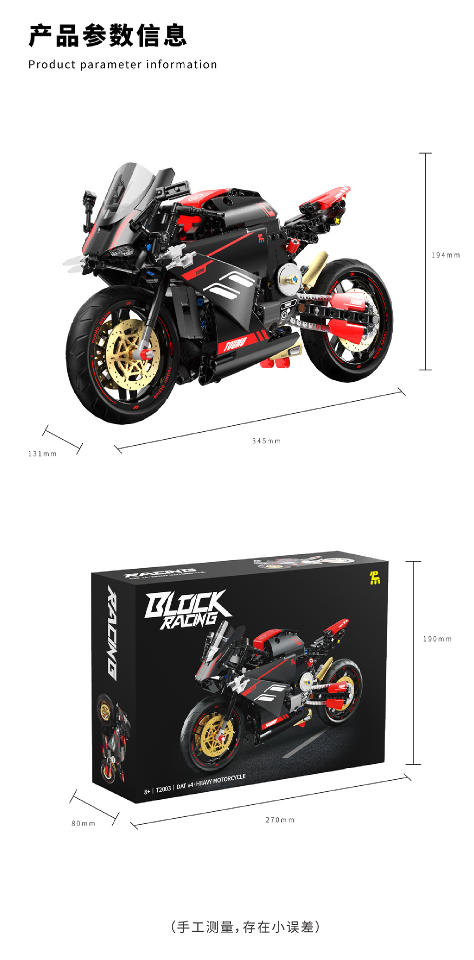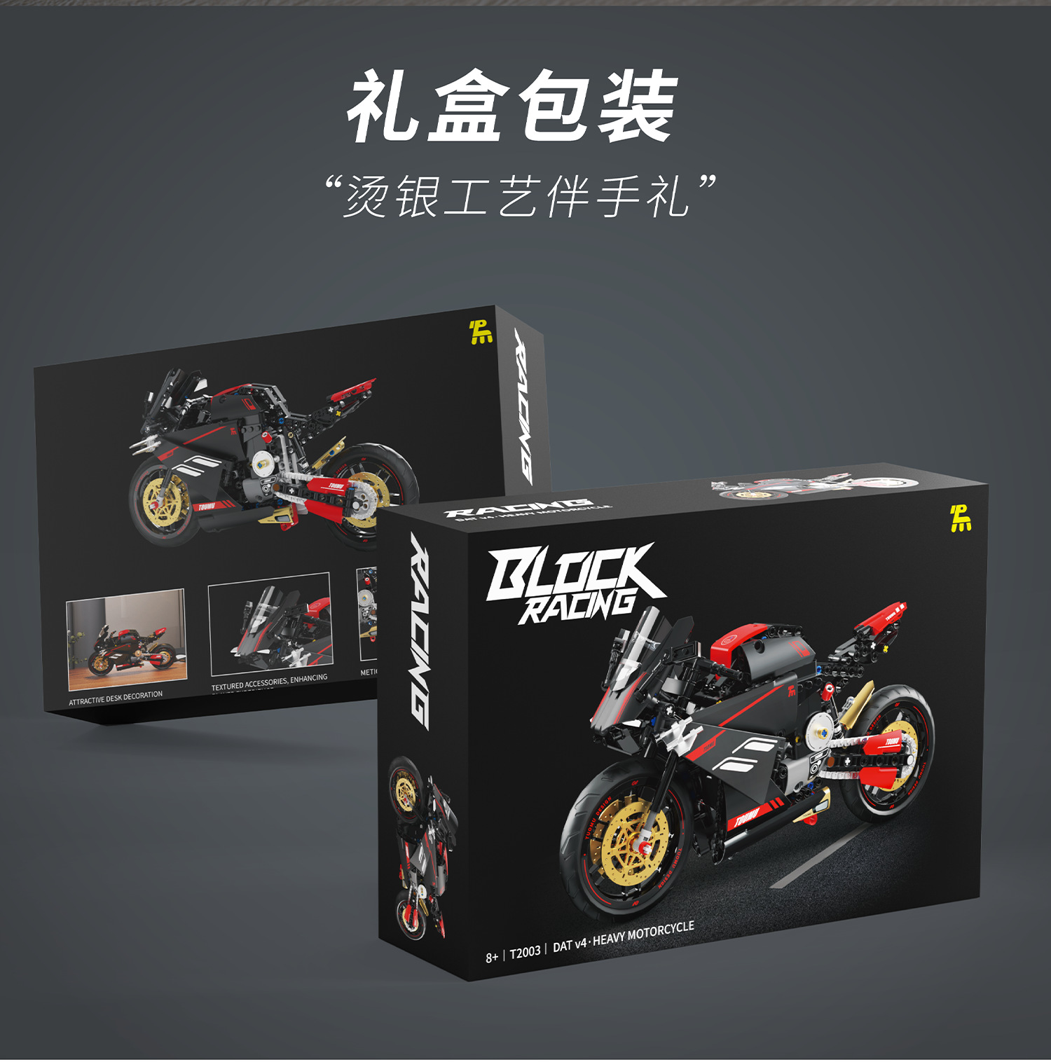 t2003 motorcycle building blocks hadulecai v4 fuchuan guqi z1 weight machine car model decoration male cross-border +