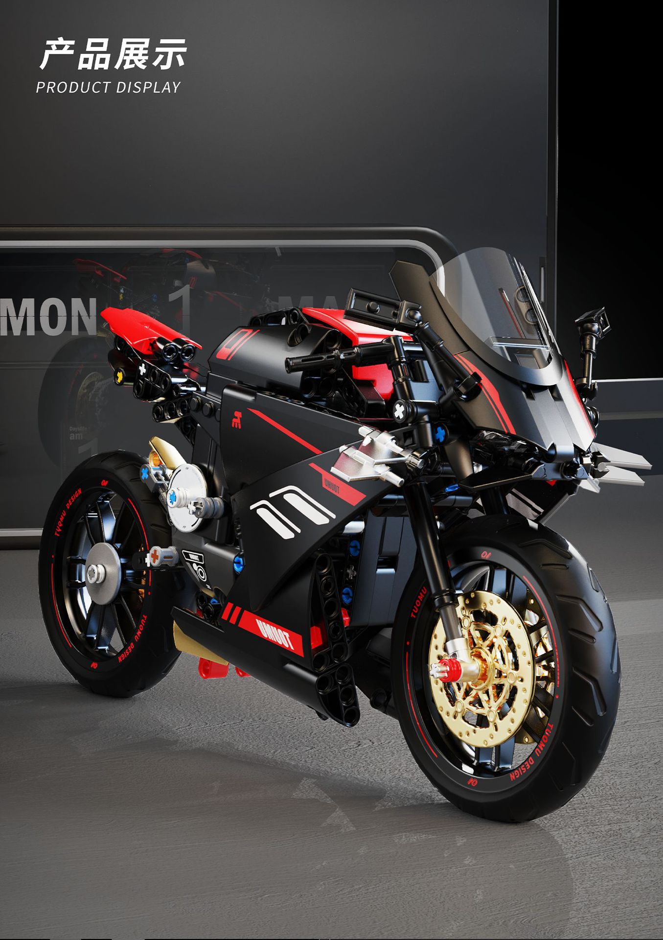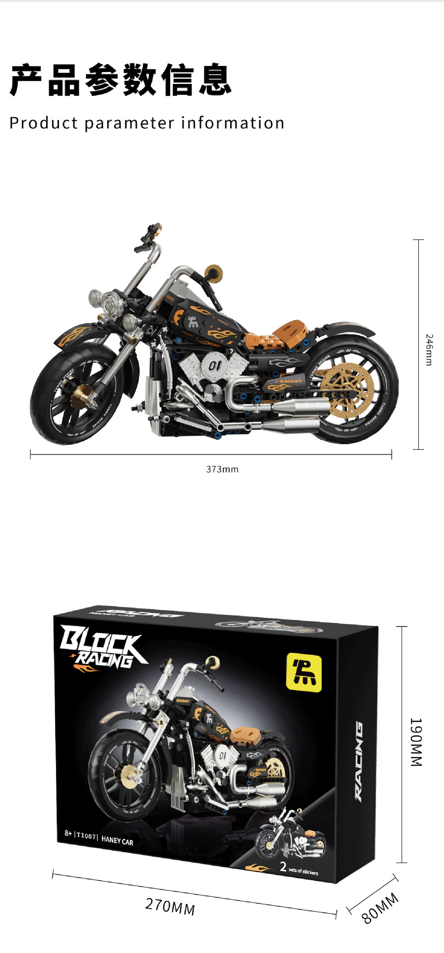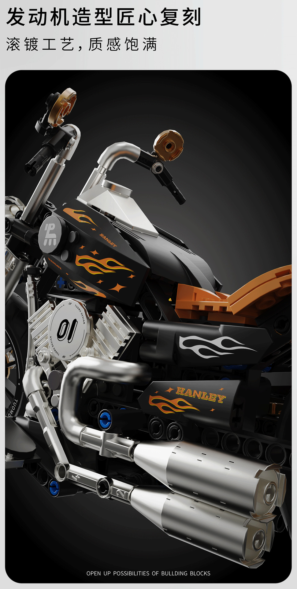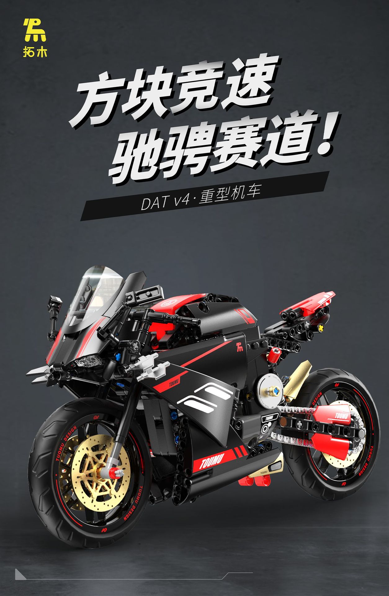 t2003 motorcycle building blocks hadulecai v4 fuchuan guqi z1 weight machine car model decoration male cross-border +