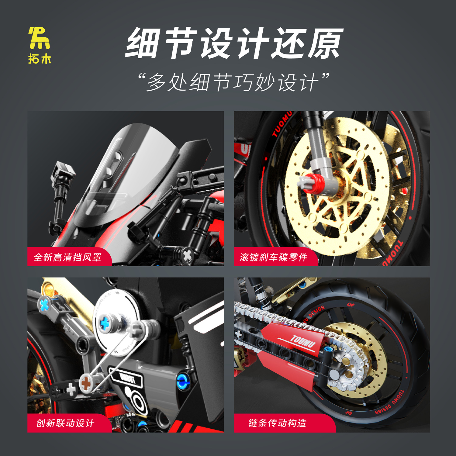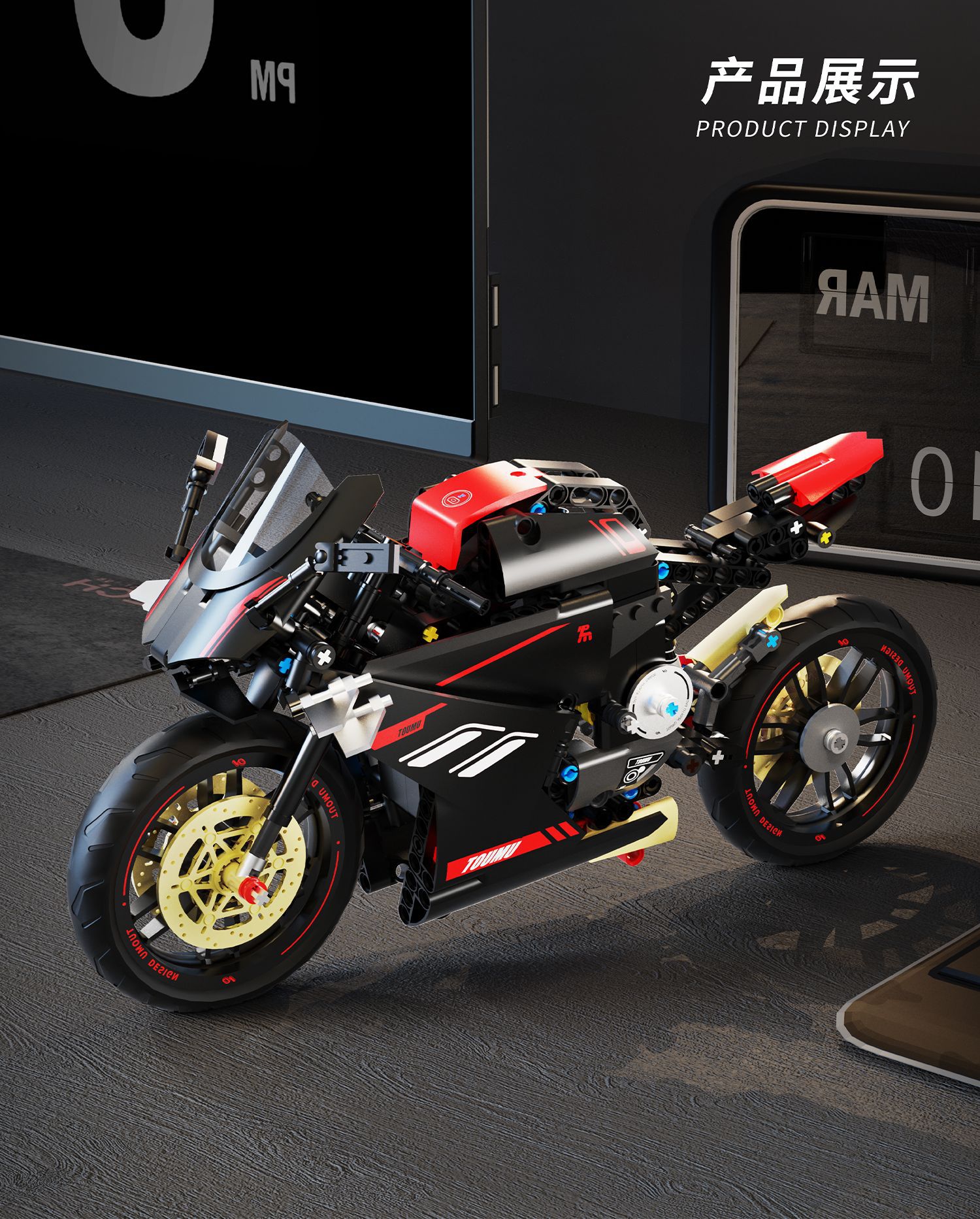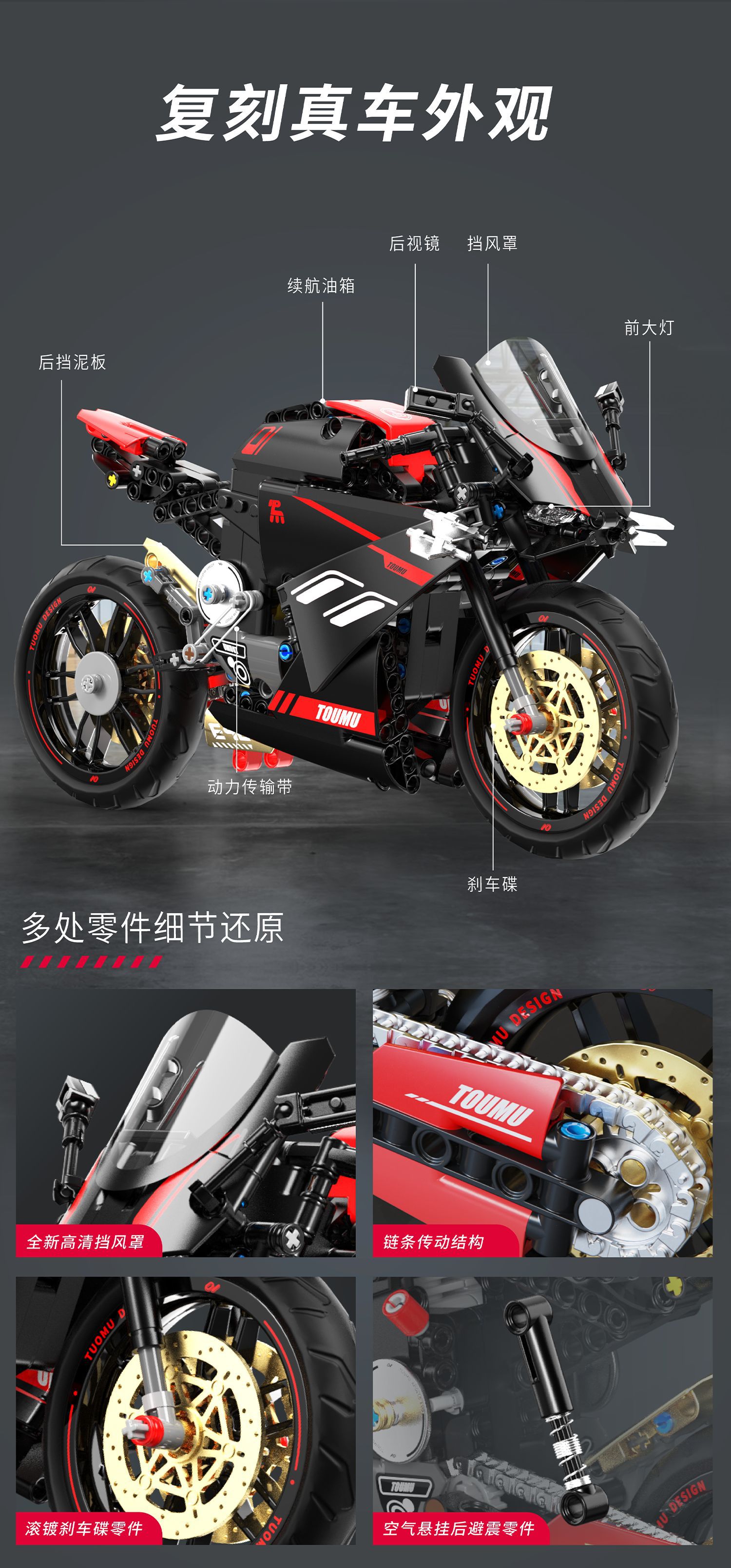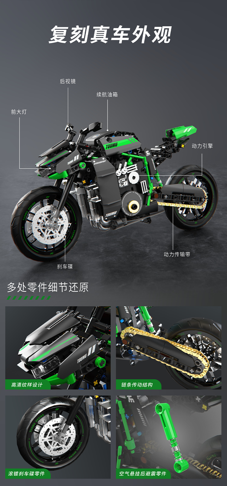 t2003 motorcycle building blocks hadulecai v4 fuchuan guqi z1 weight machine car model decoration male cross-border +