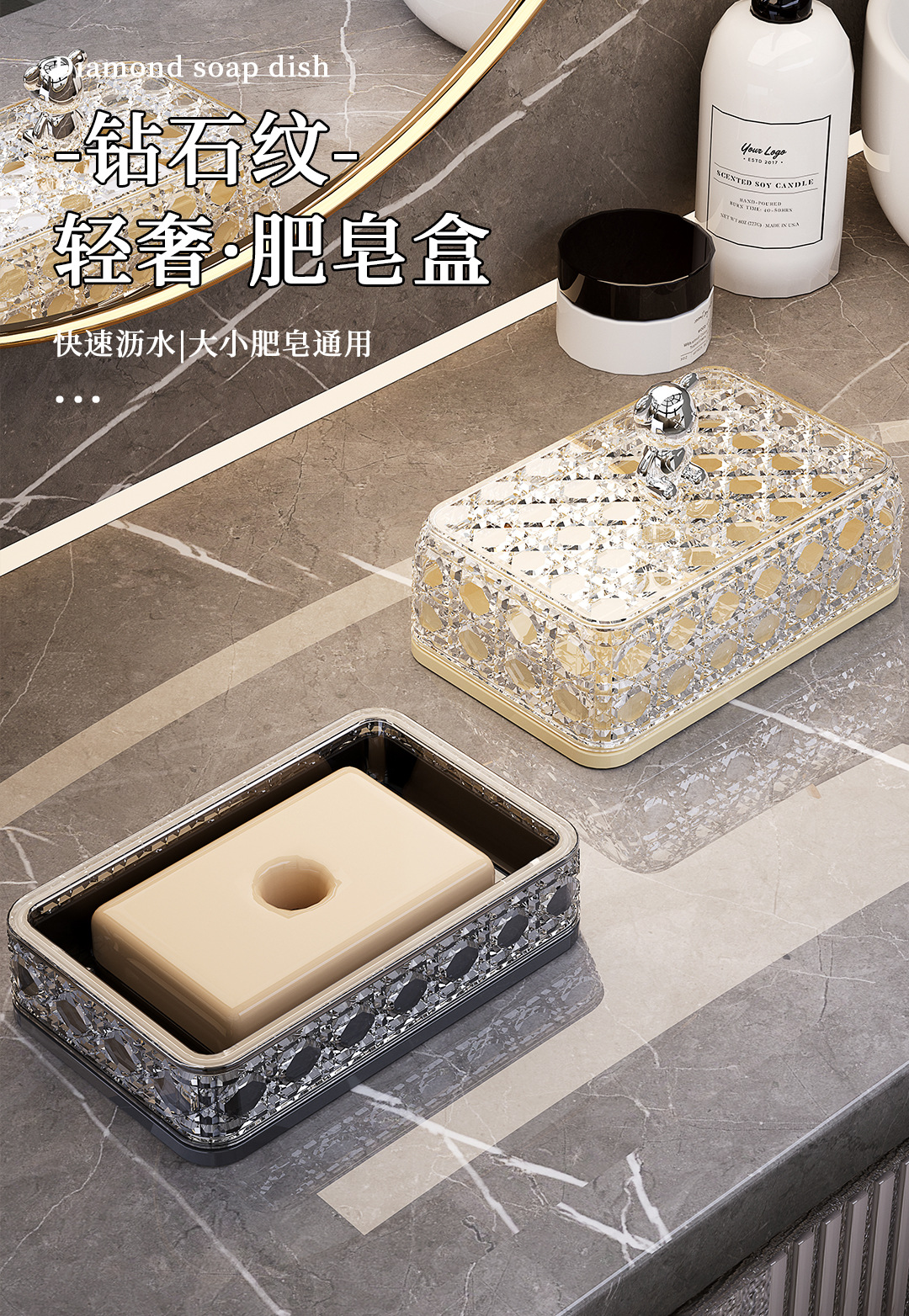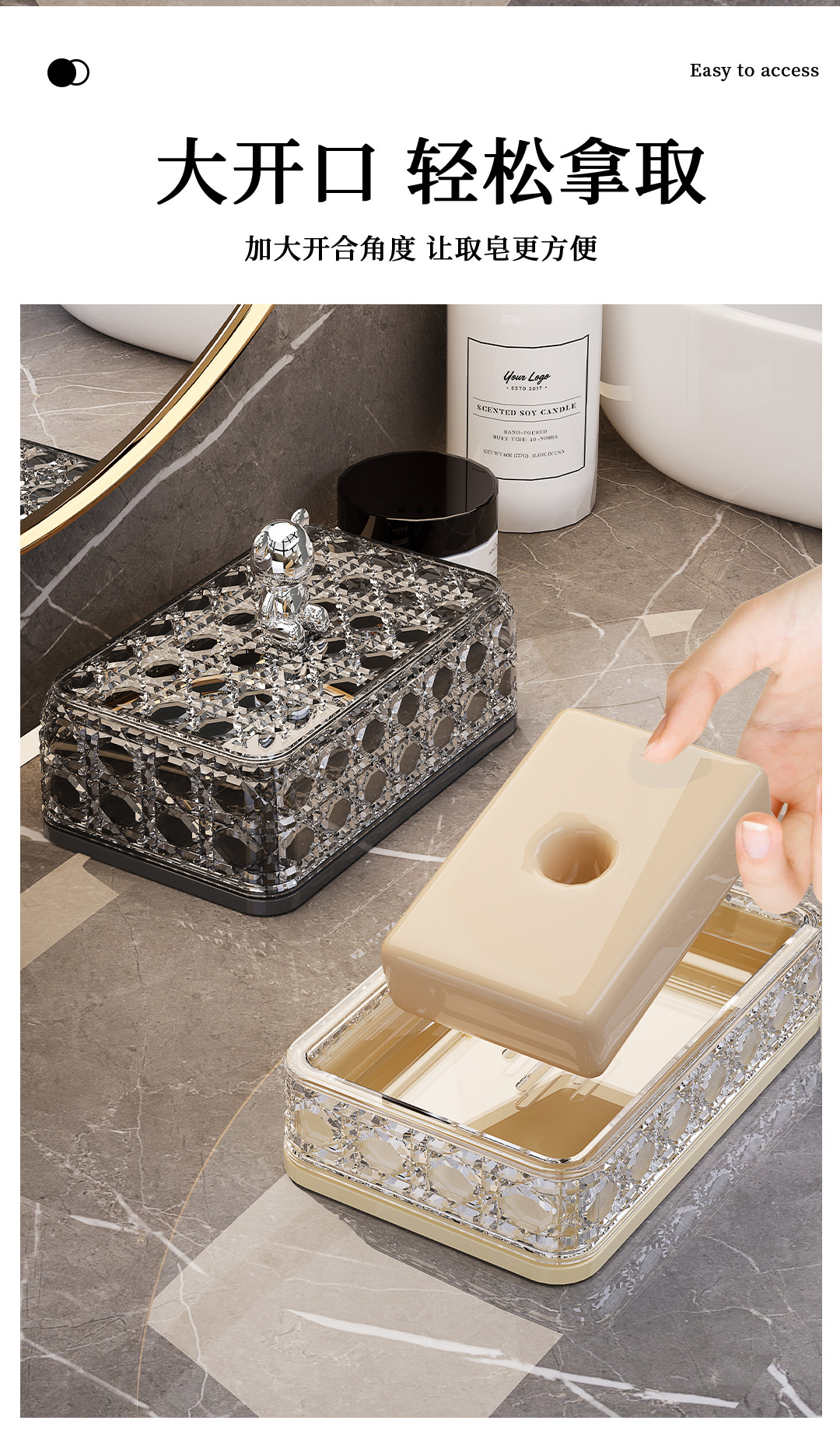 yx high-grade household rattan plaid soap box light luxury bathroom bathroom soap box high-grade draining soap rack