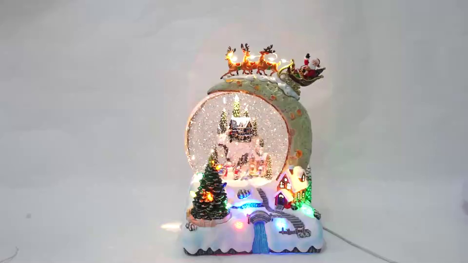 music christmas moon plastic led light country christmas tree mobile home decoration santa claus reindeer sled