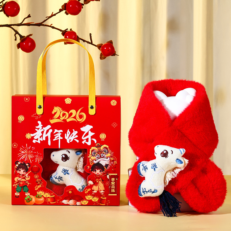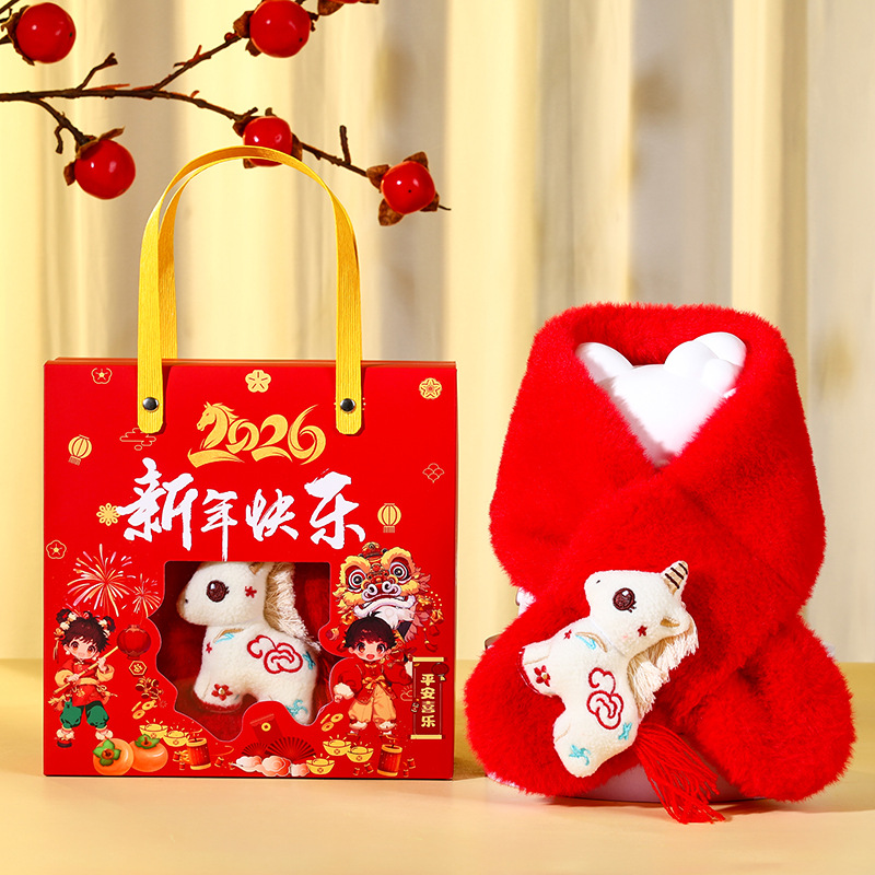 new year gift box + [cartoon big eye red horse]]