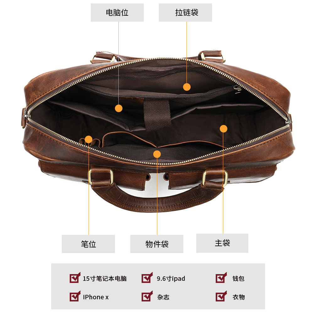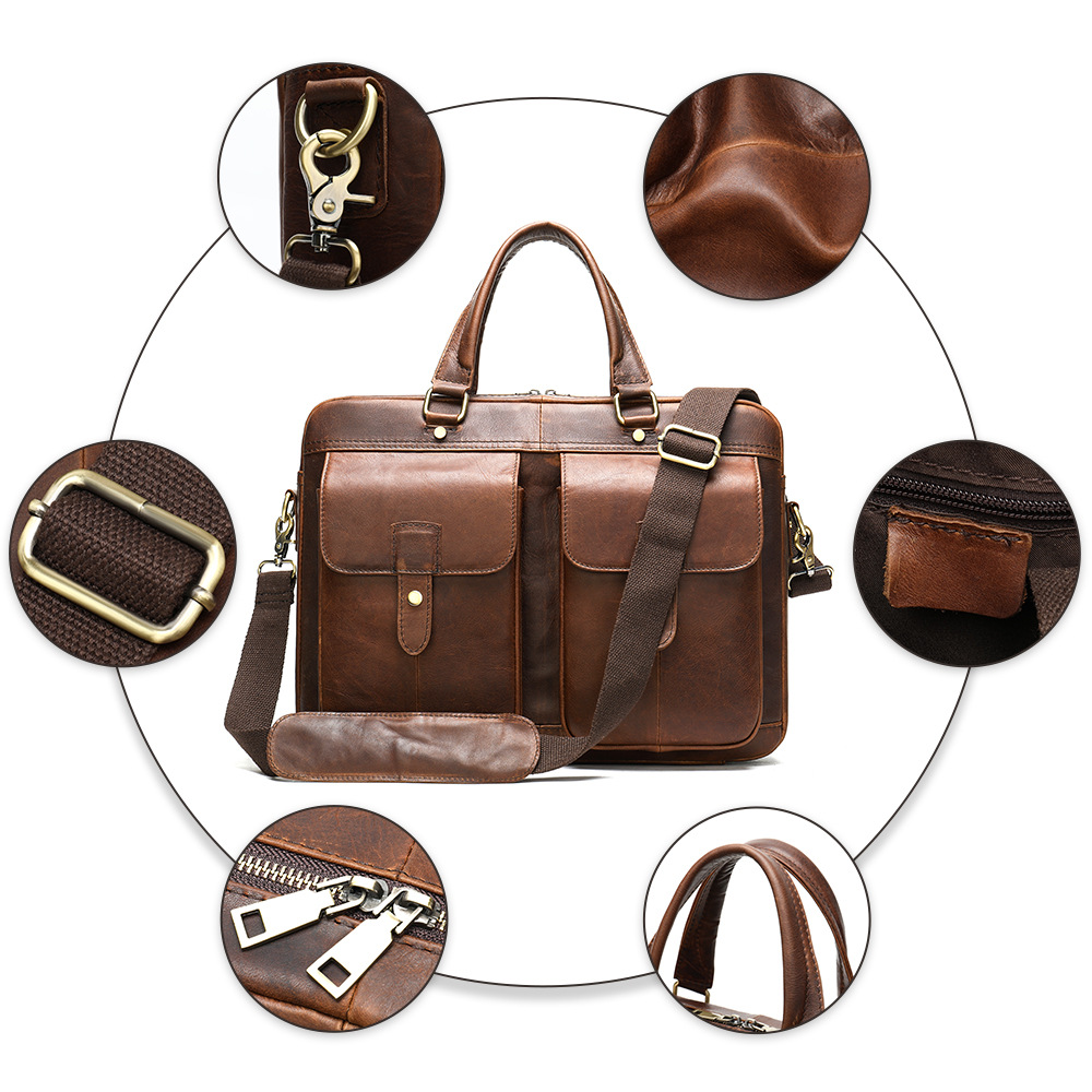 vintage first layer cowhide men's briefcase genuine leather portable 15 inch computer bag textured commuter briefcase men's bag