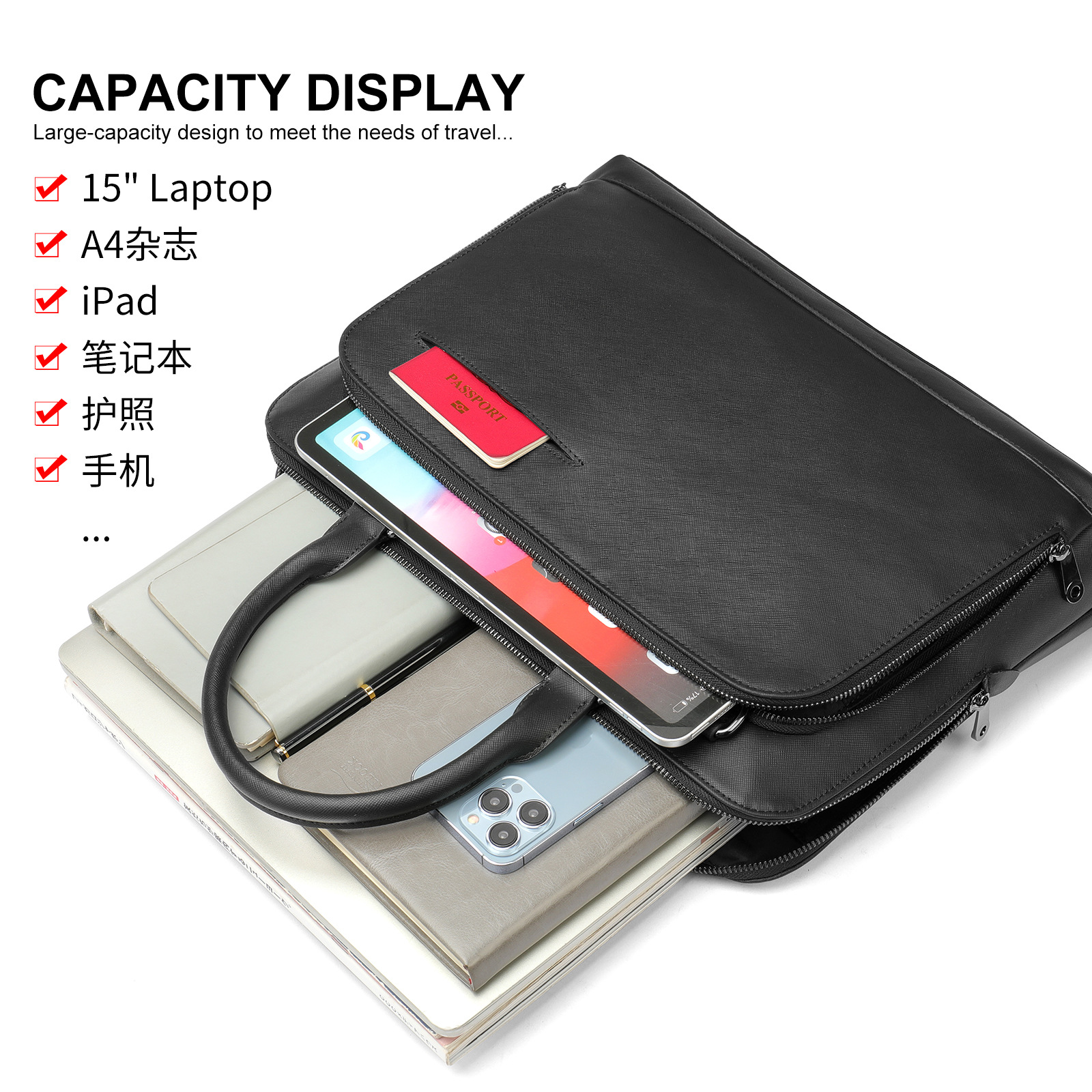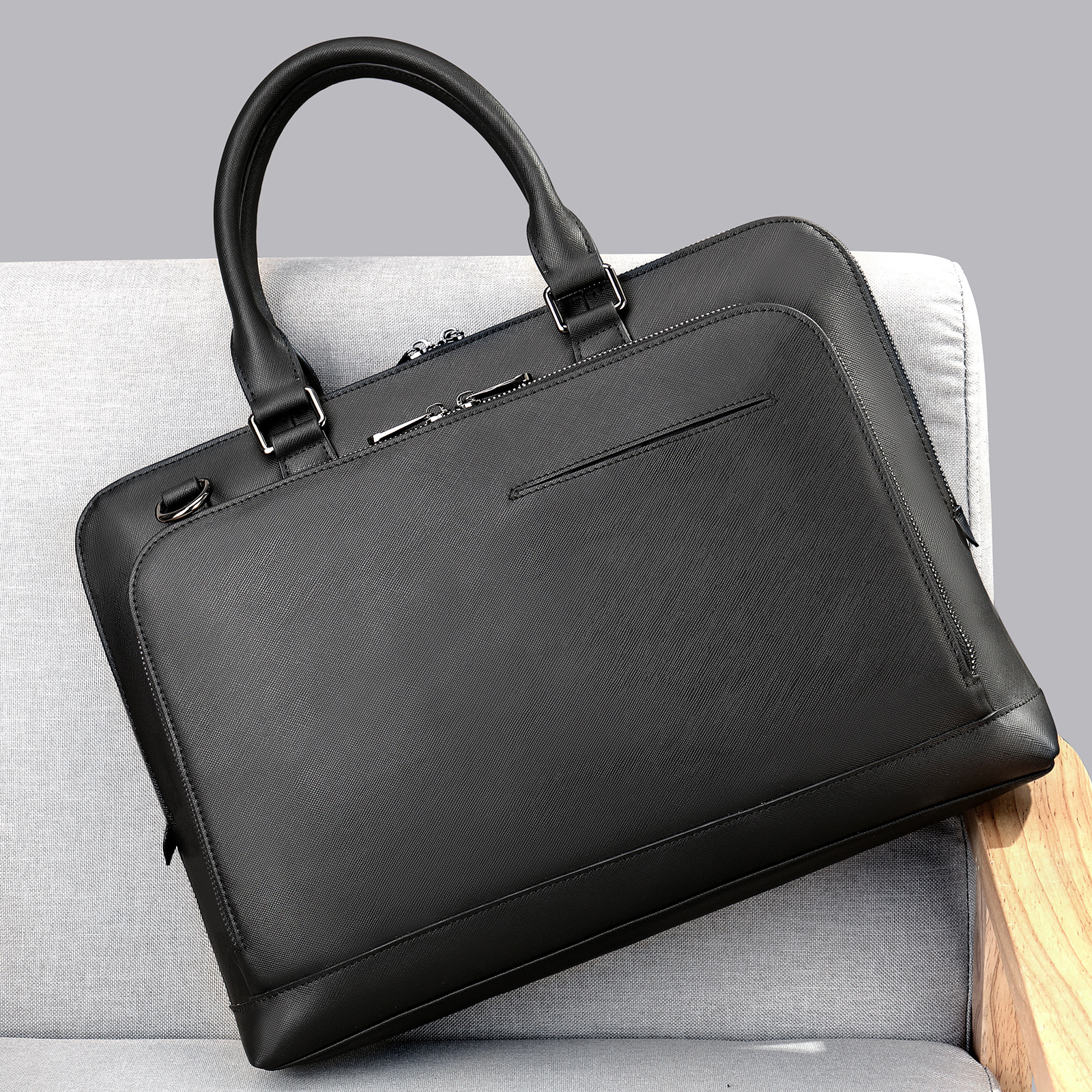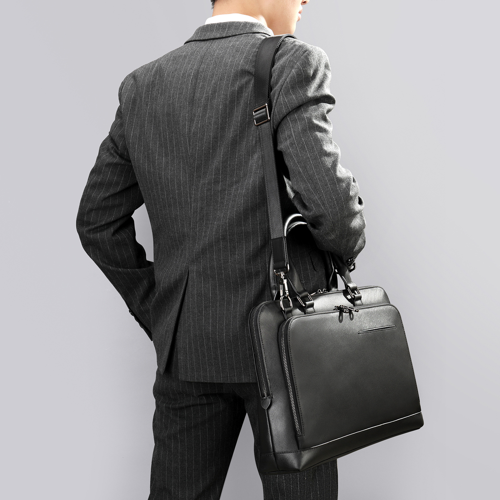 new genuine leather cross pattern briefcase men's large capacity textured men's briefcase shoulder laptop bag men