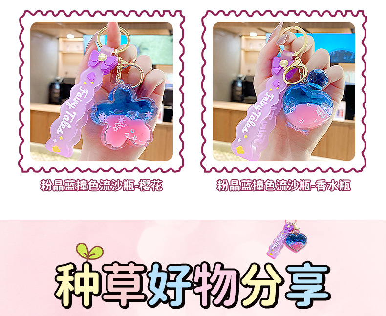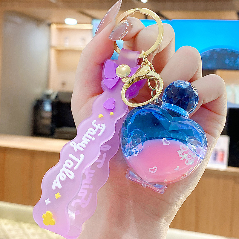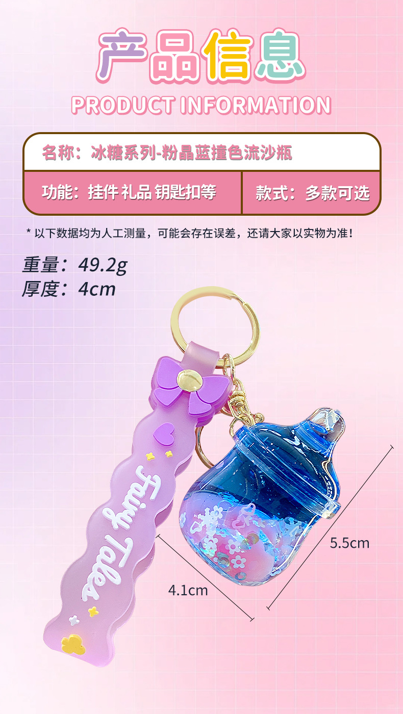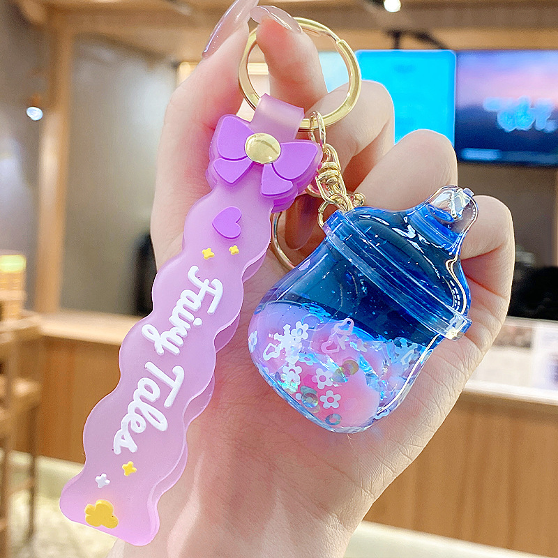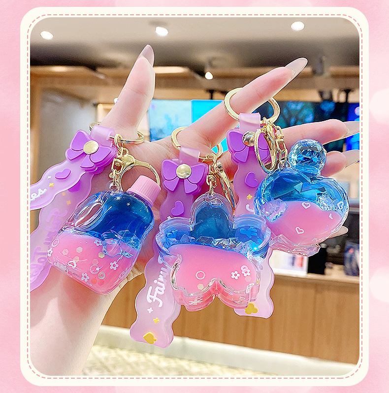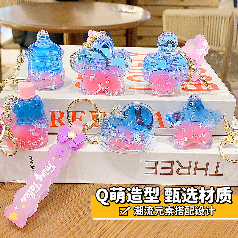 quicksand pink crystal blue contrast color quicksand bottle keychain pendant exquisite schoolgirl's schoolbag key ornament gift wholesale