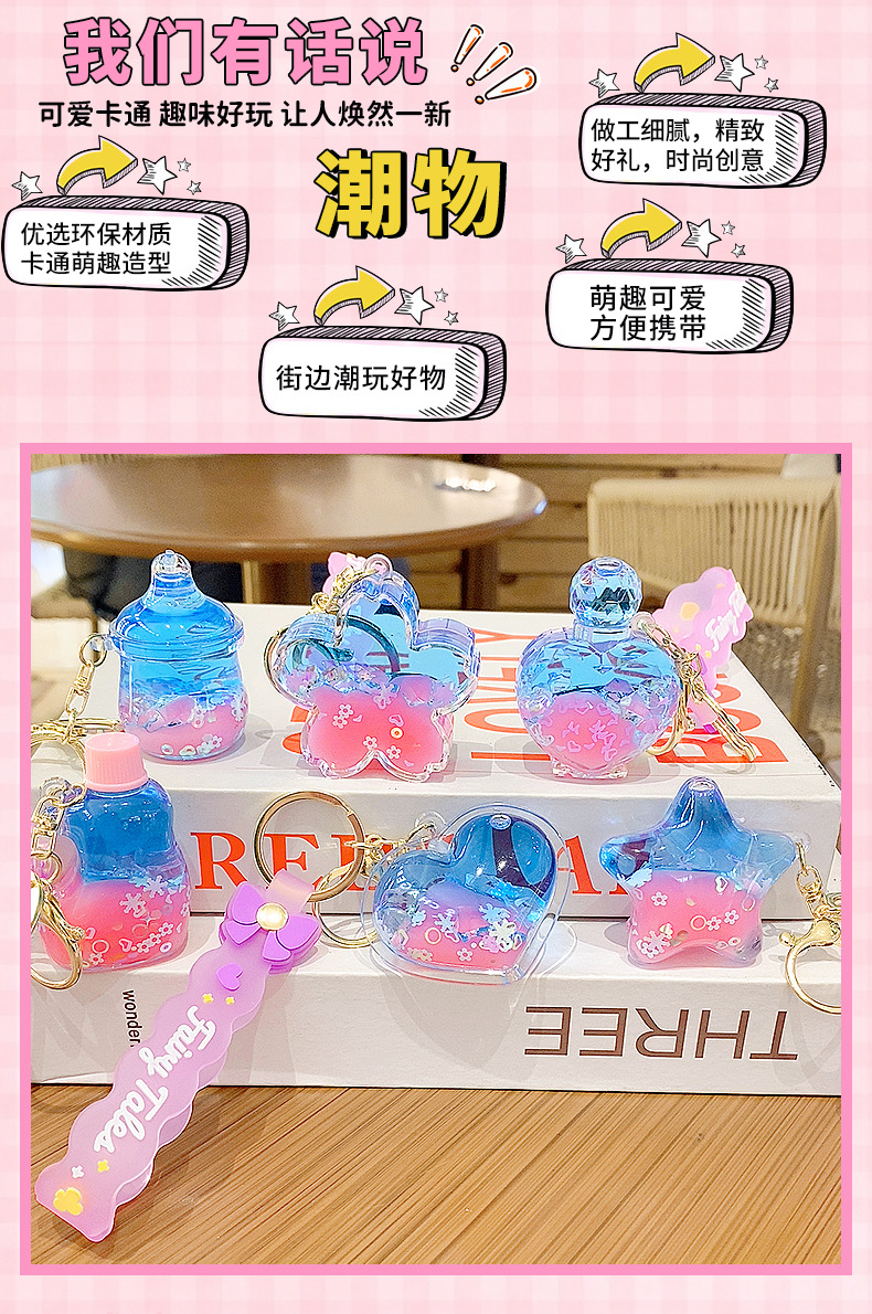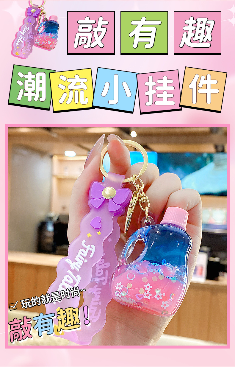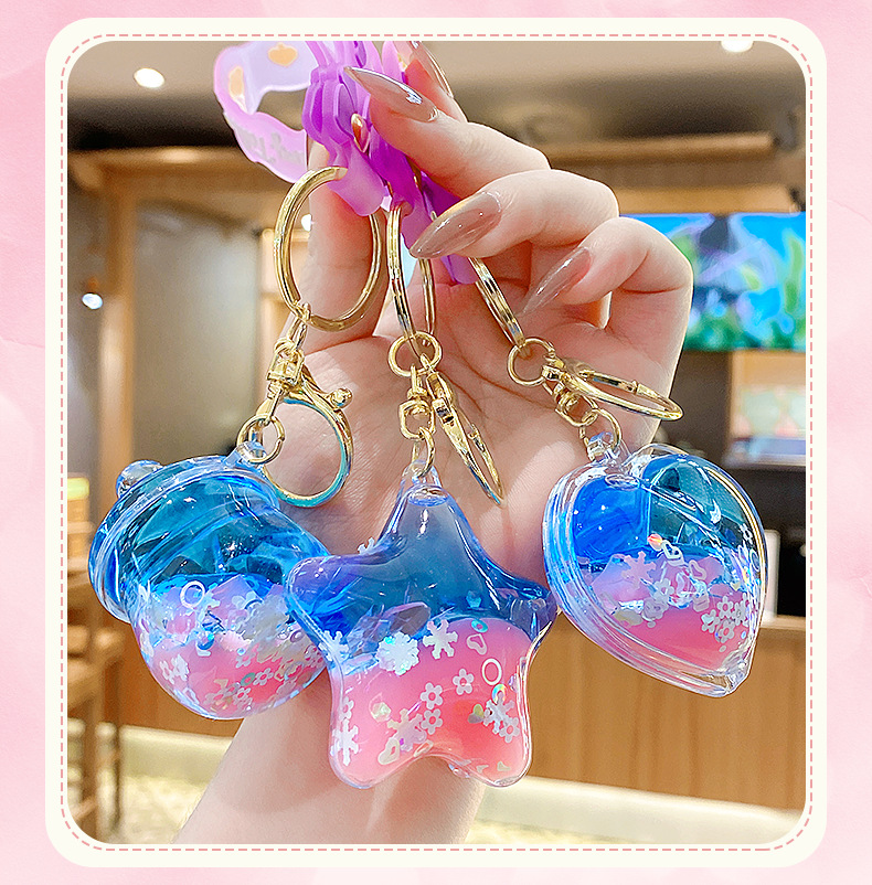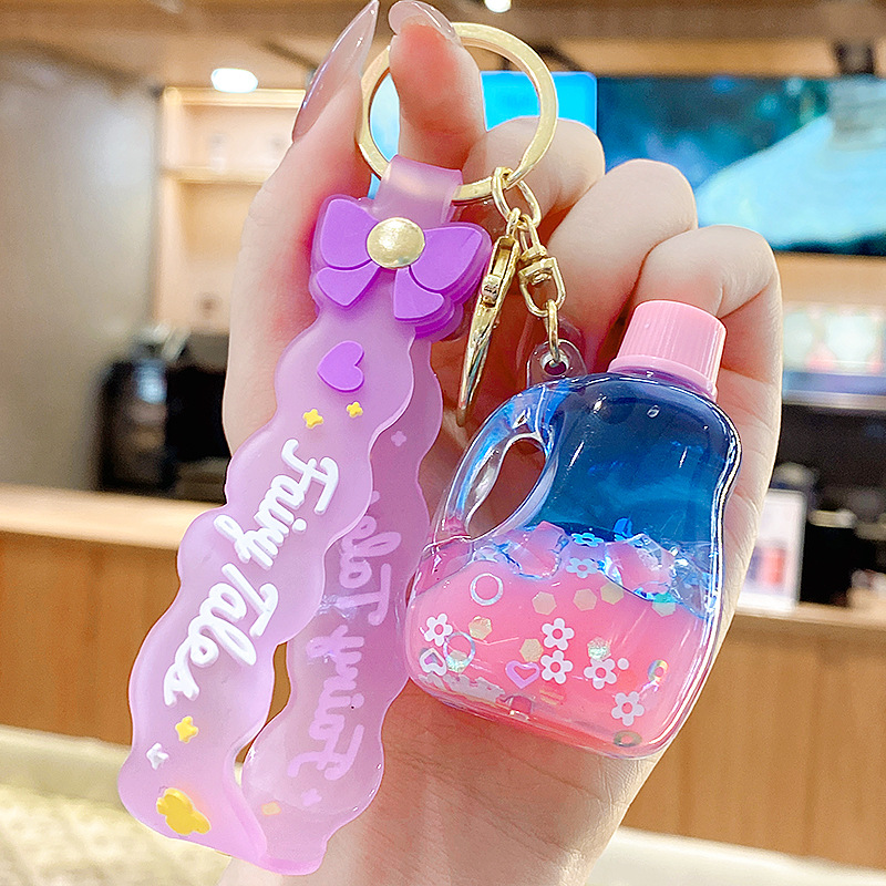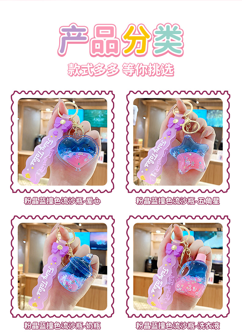 quicksand pink crystal blue contrast color quicksand bottle keychain pendant exquisite schoolgirl's schoolbag key ornament gift wholesale
