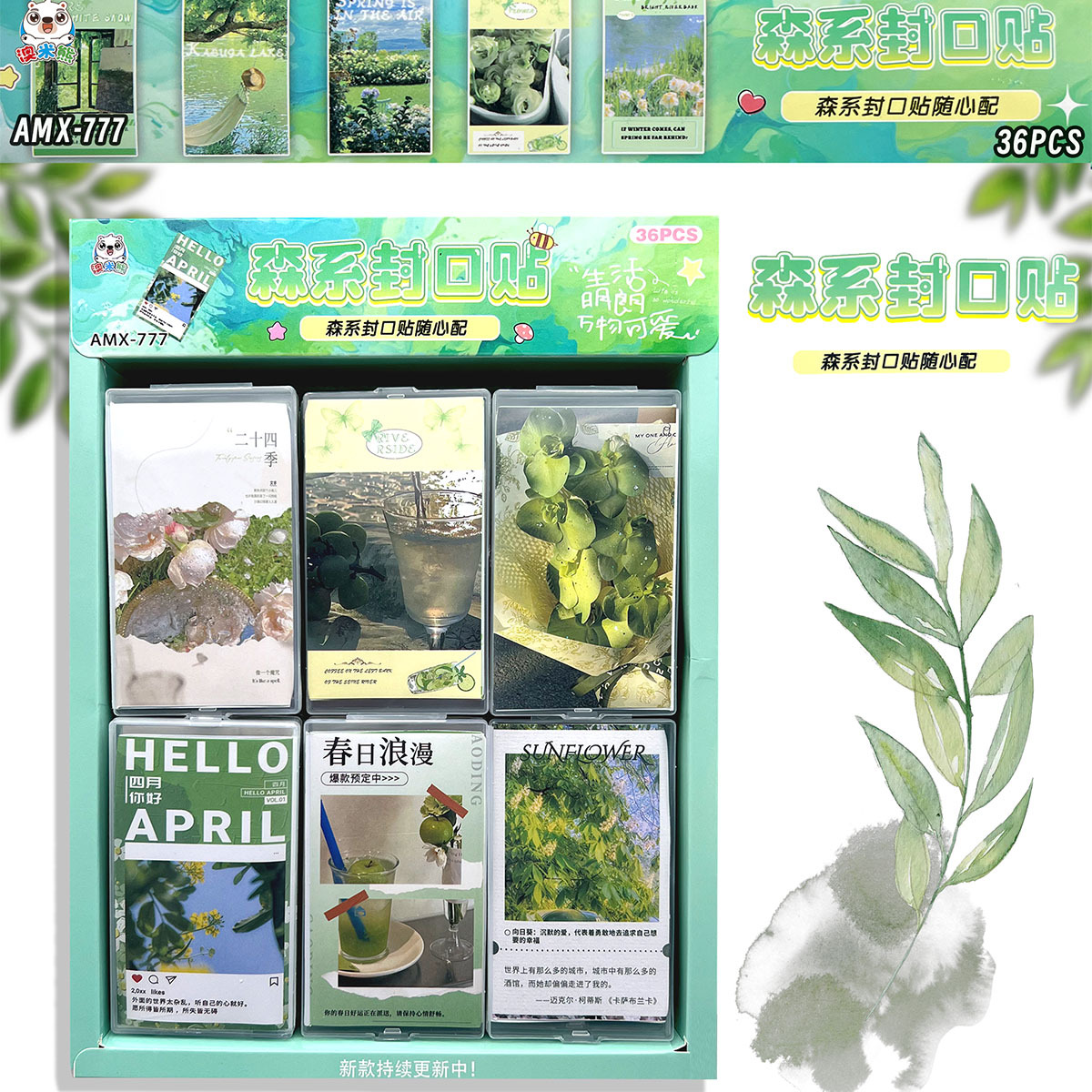 36 into mori style stickers forest green environmental protection ins style sealing paste cute cartoon decorative stickers internet celebrity hot sale