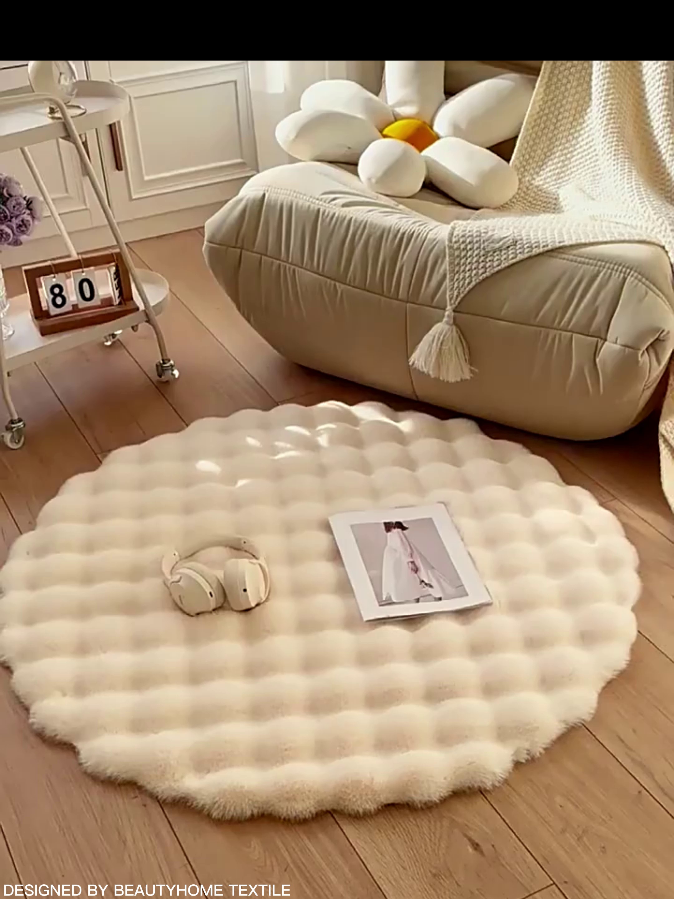 round bubble velvet cream style rabbit plush carpet sofa round pad floor mat living room coffee table study children's room floor mat