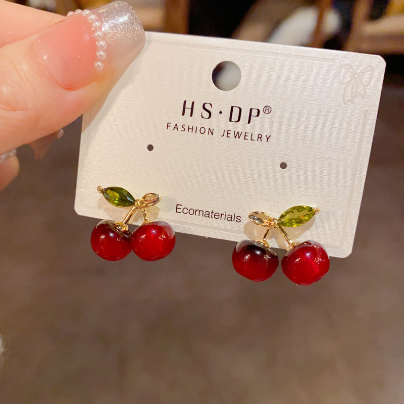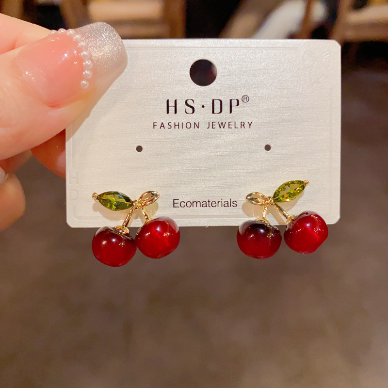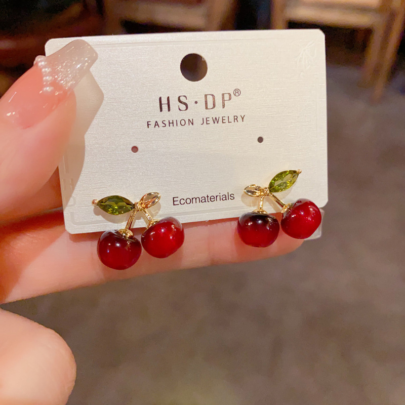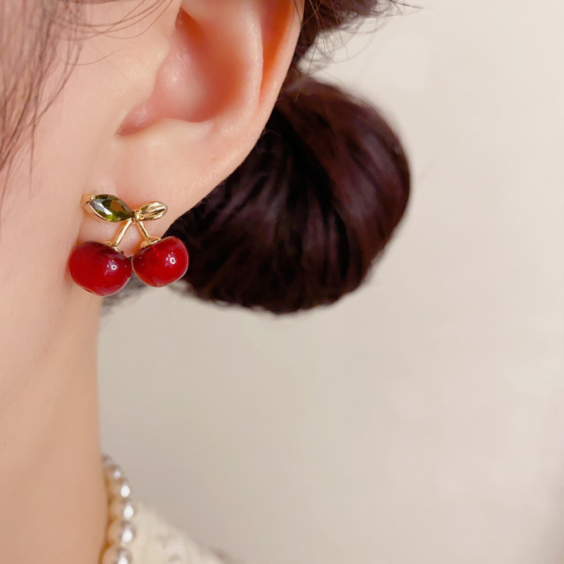 red cherry earrings (thick gold plating)