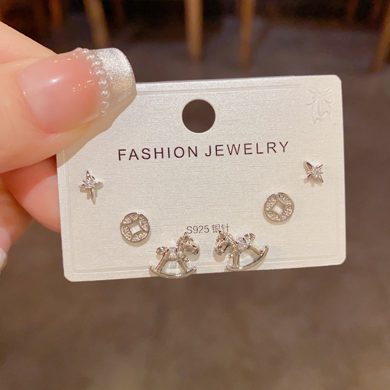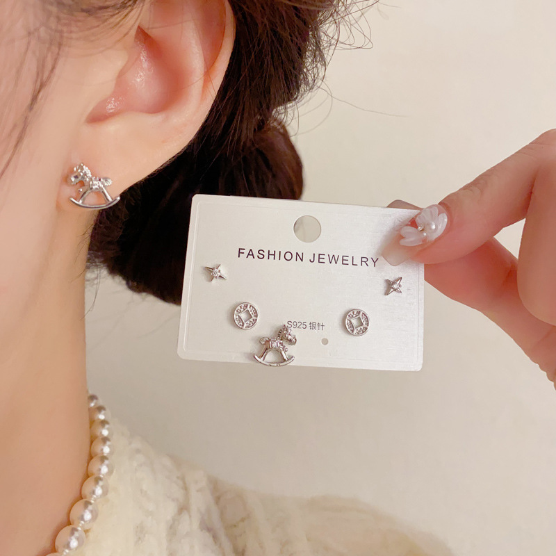 golden-trojans copper coins three-piece earrings (thick real gold plating)