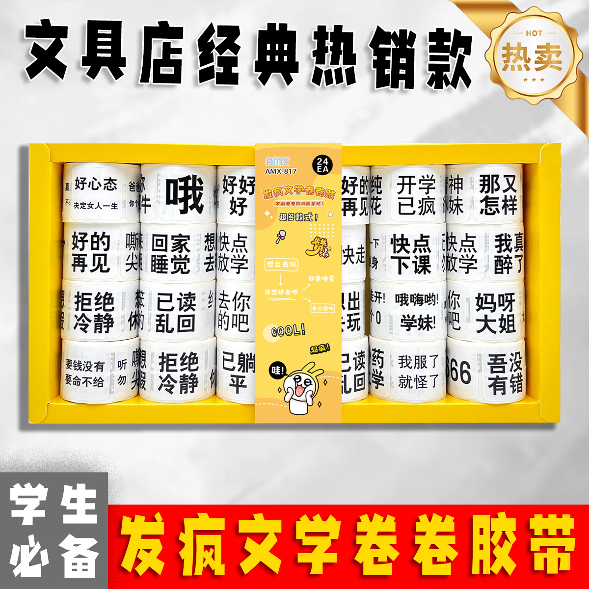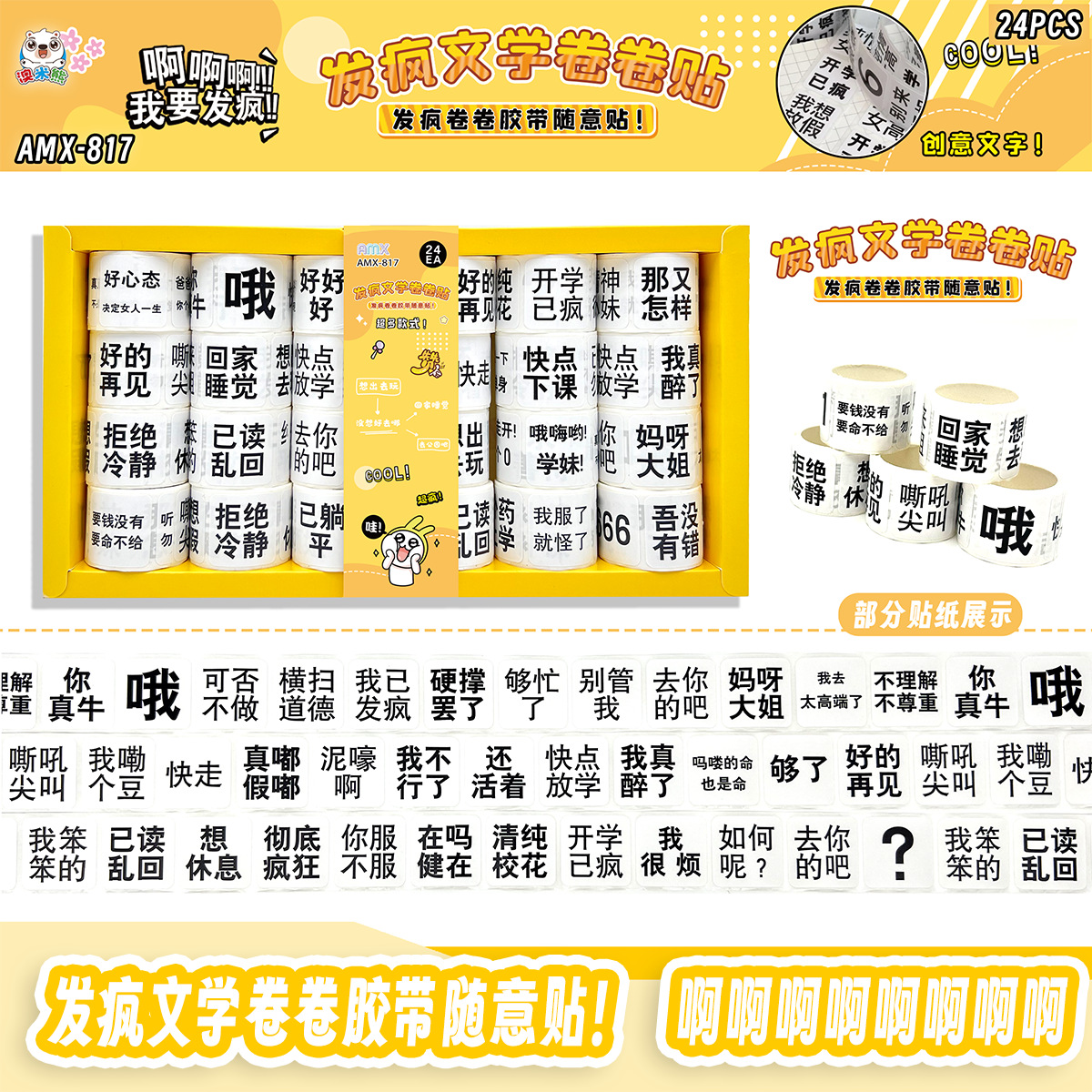 24 into crazy literature roll stickers good-looking sealing paste tape cartoon cute journal stickers wholesale