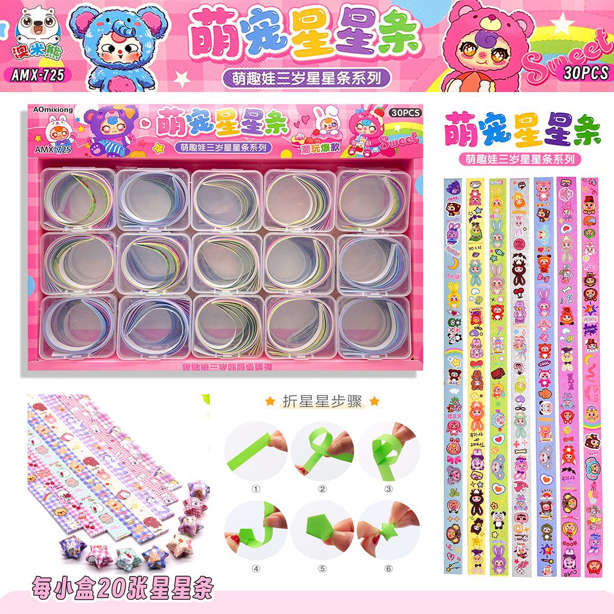 30 into the baby three cartoon printing make a wish star origami children's origami paper primary school student canteen play