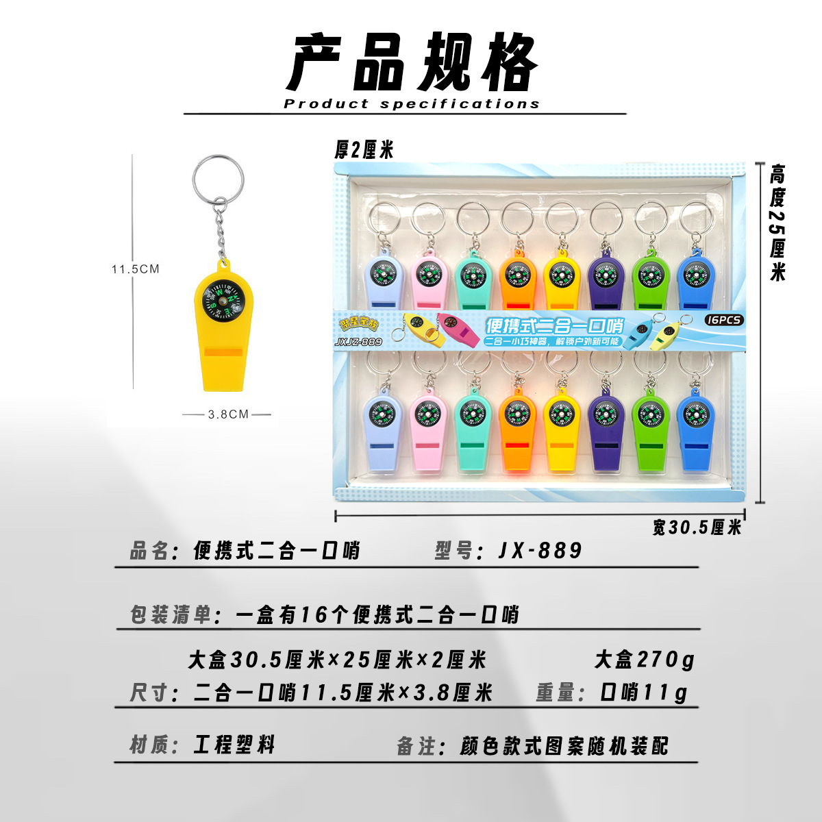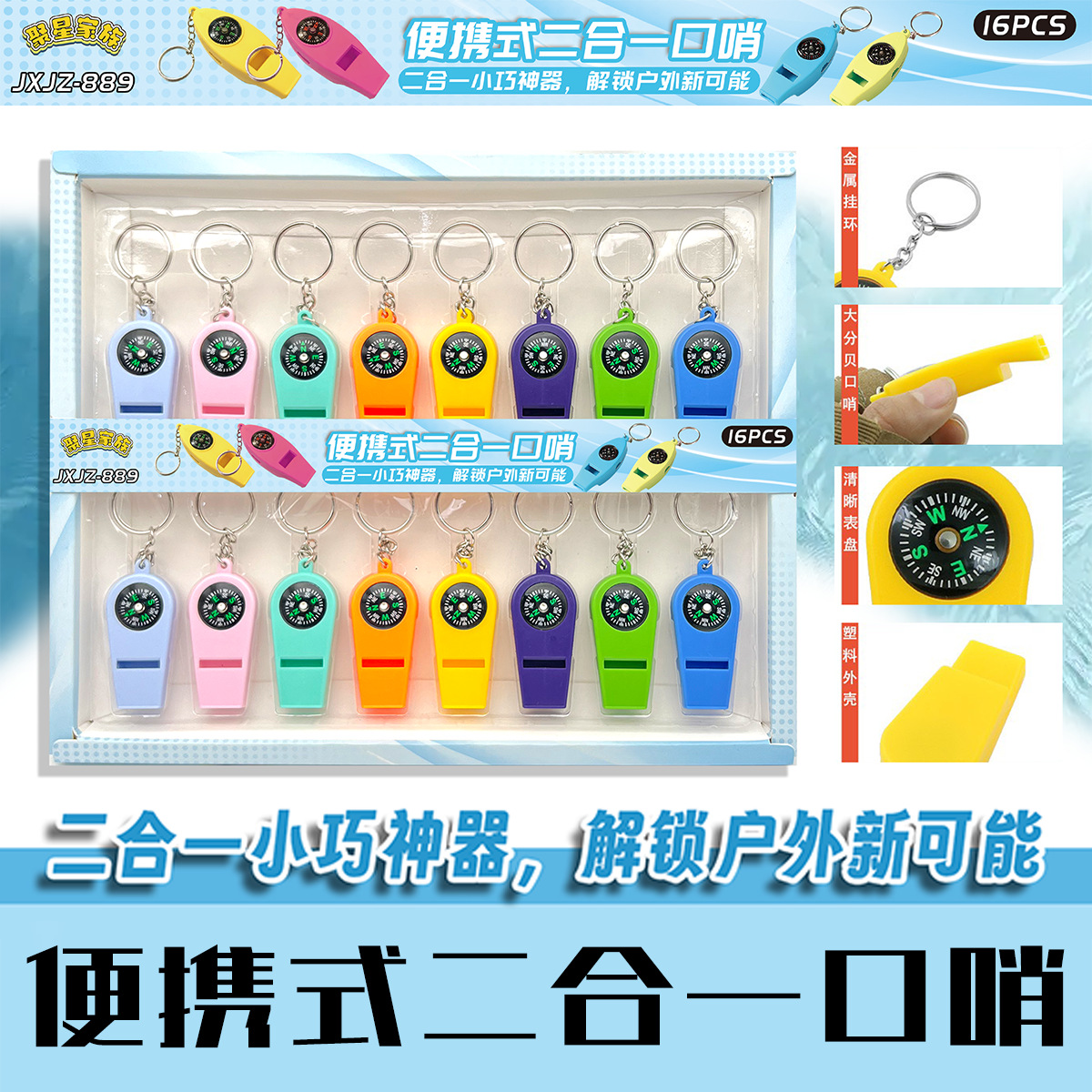 16-in-emergency whistle color two-in-one multifunctional compass survival bag accessories whistle color plastic