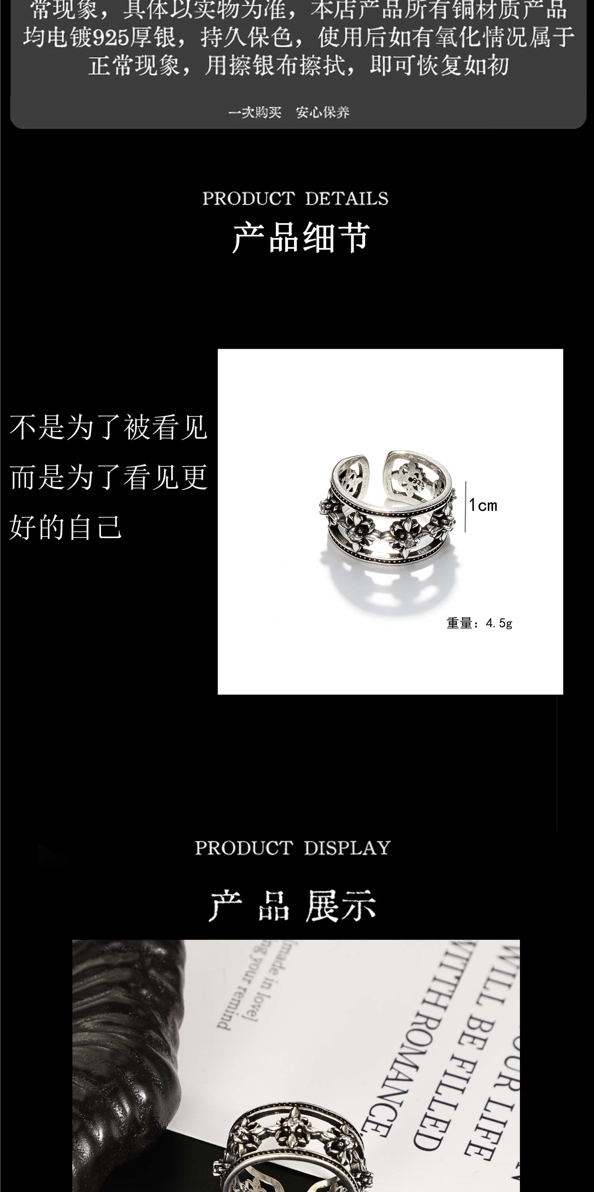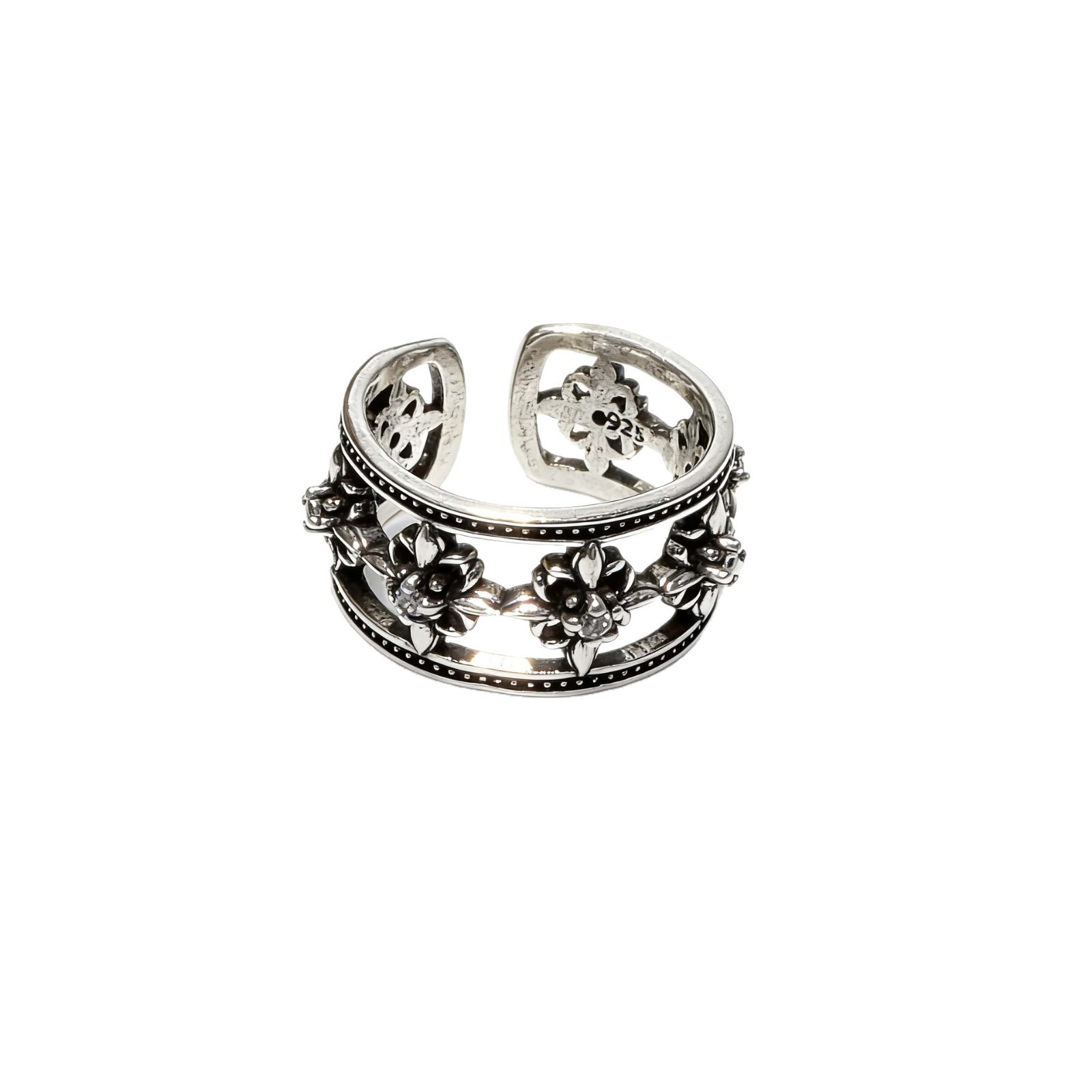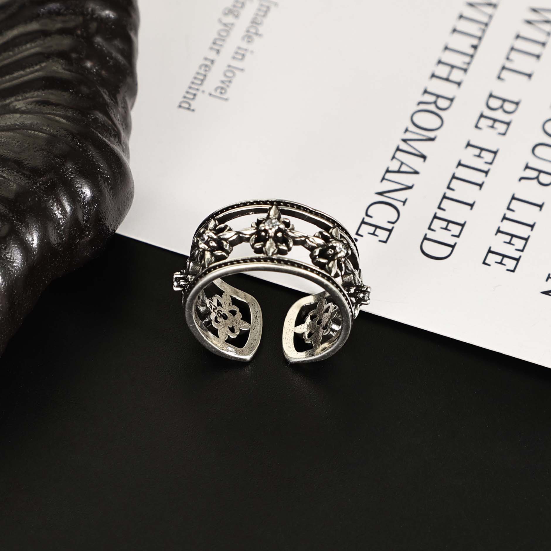 sterling silver cruciate flower boat anchor six-pointed star open hollow ring men and women retro simple all-match single students' ring