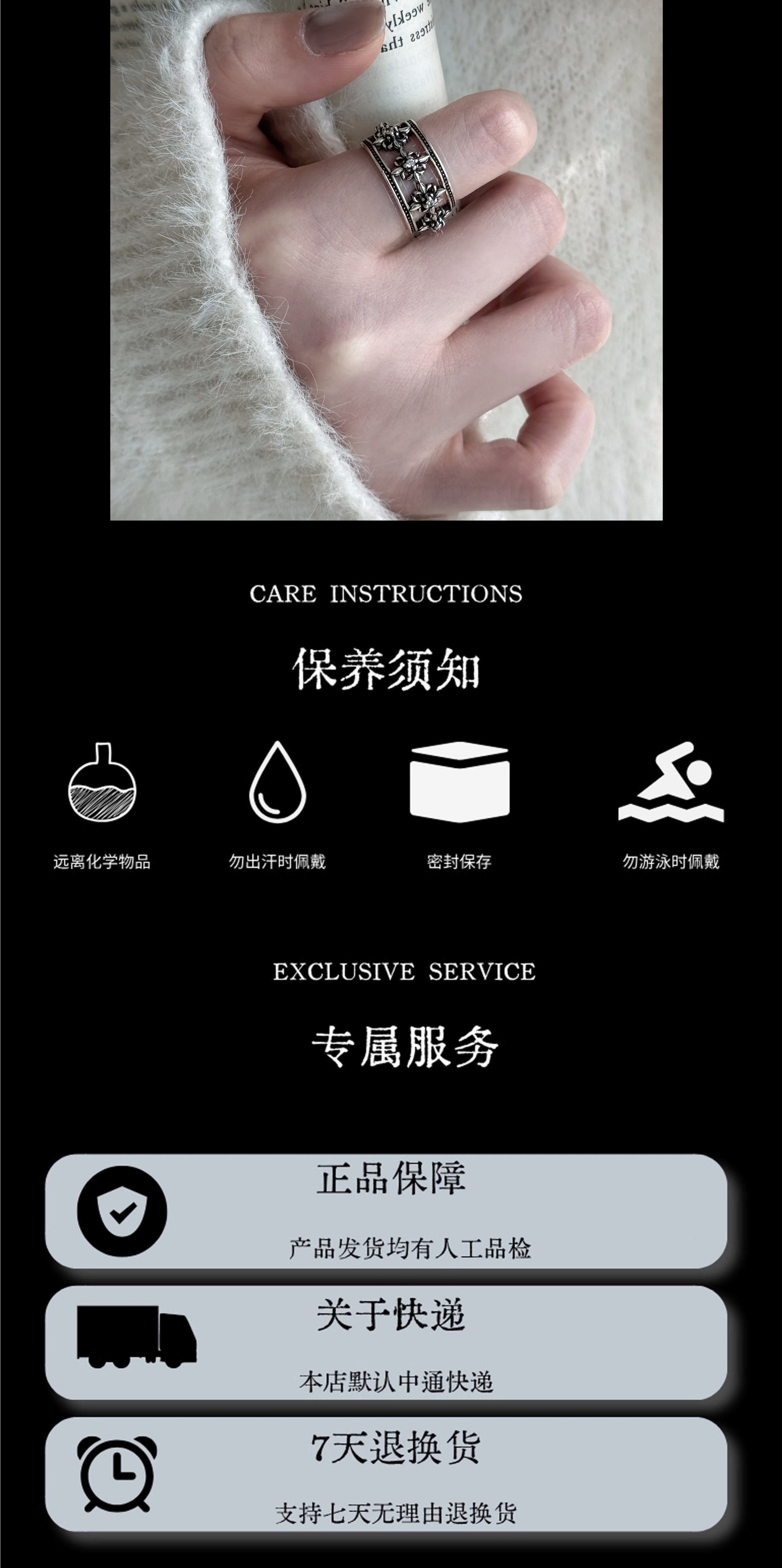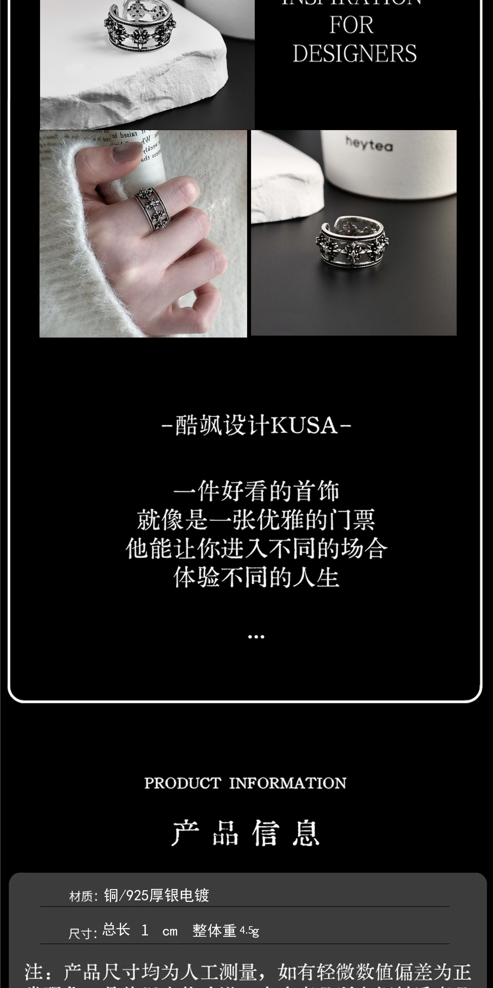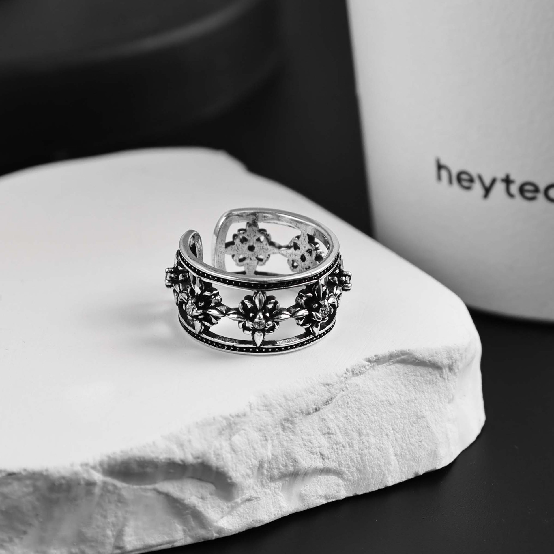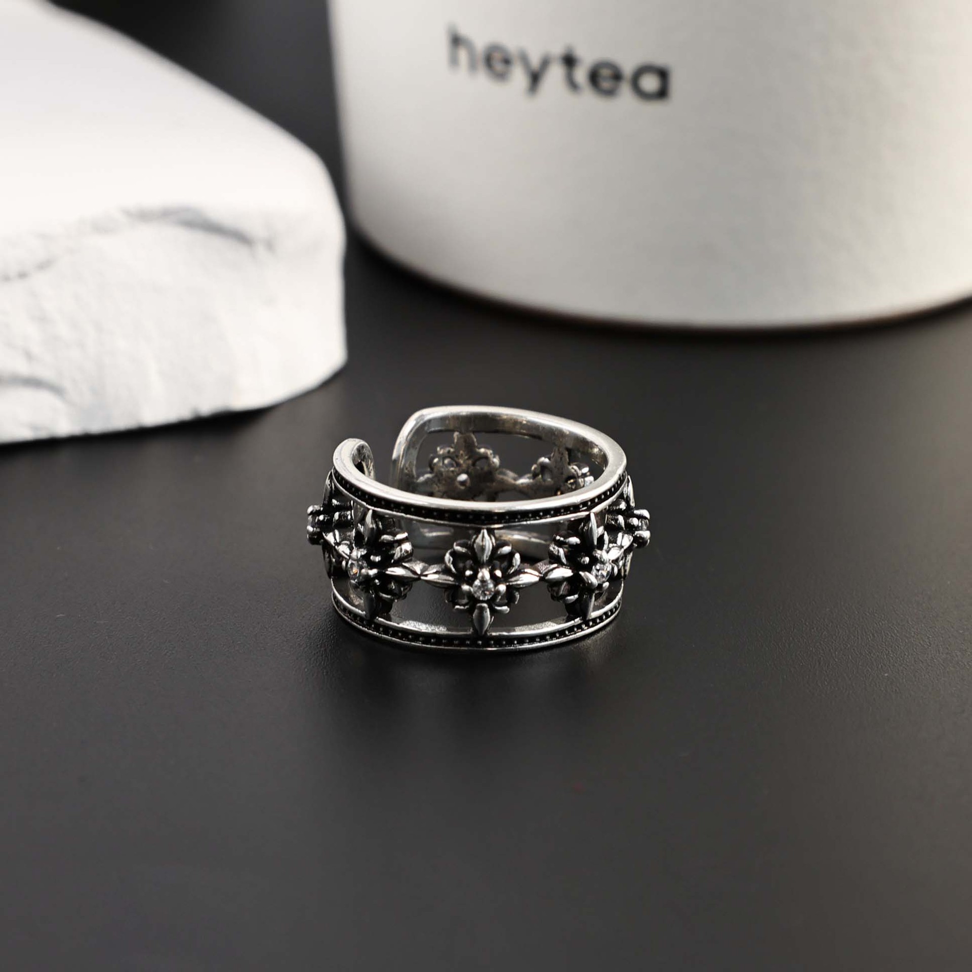 sterling silver cruciate flower boat anchor six-pointed star open hollow ring men and women retro simple all-match single students' ring