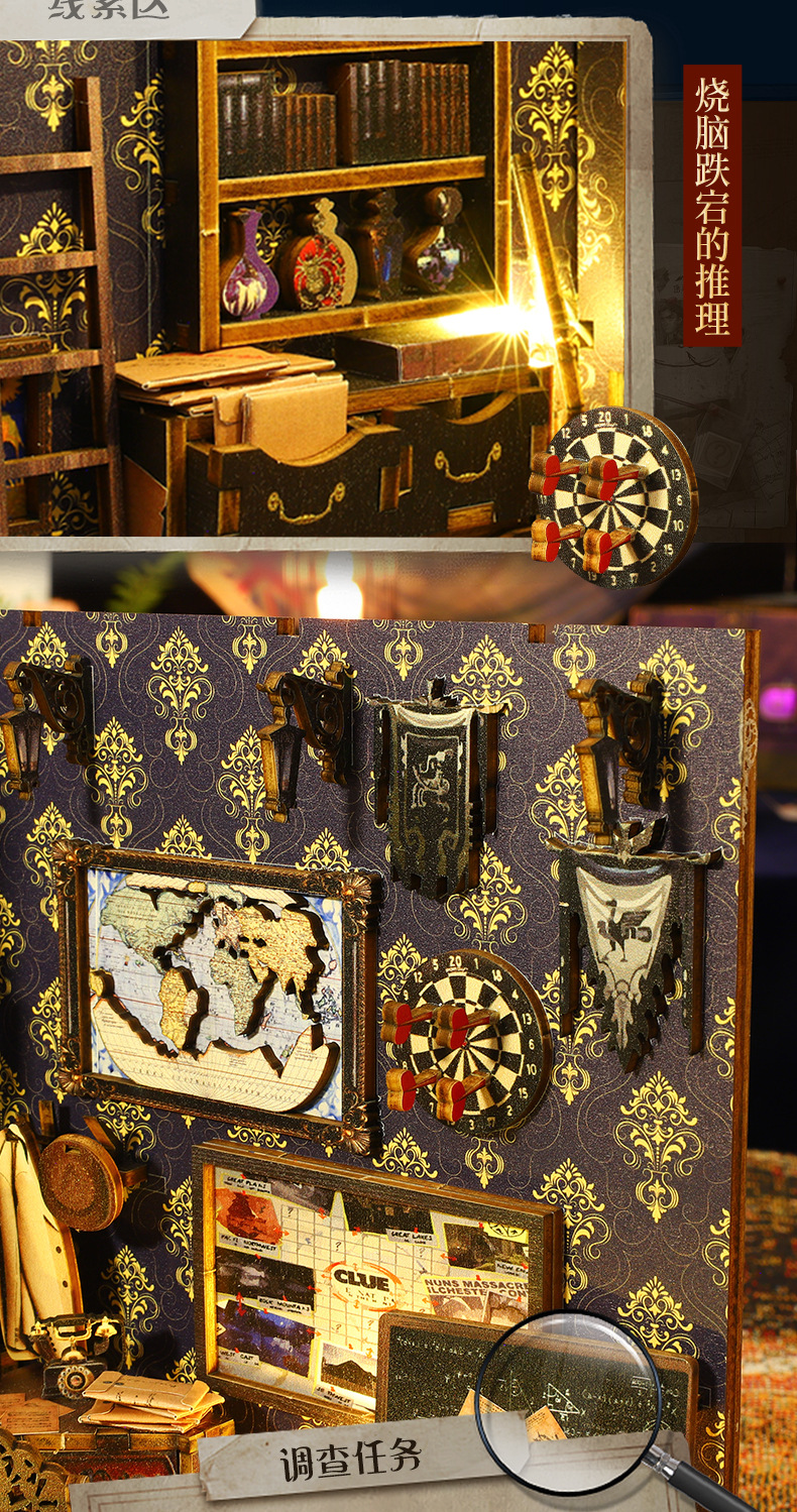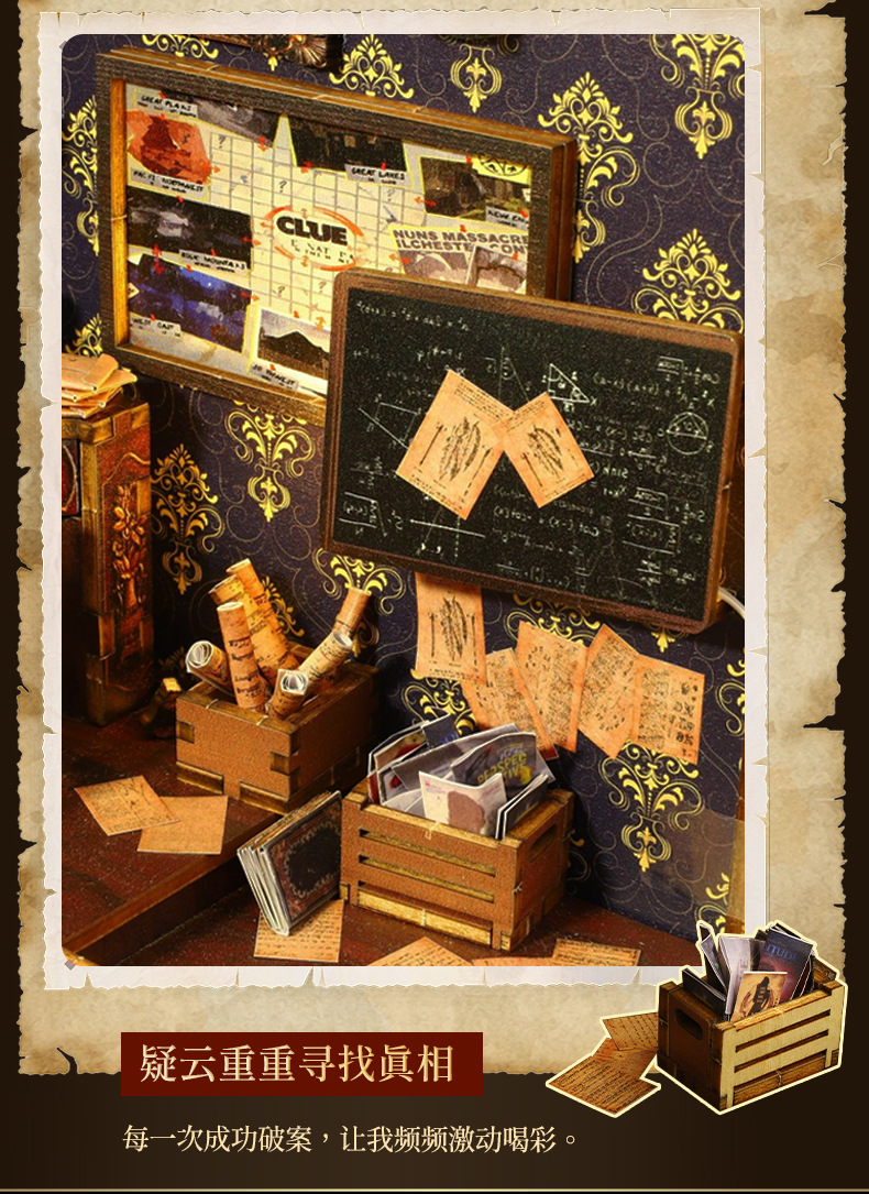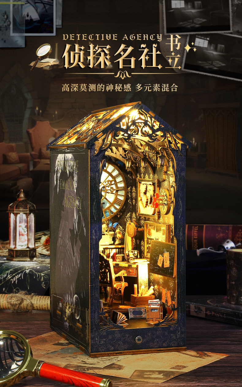 Product Information: SL007-B Detective Agency + Small Movement, individual weight: 1.2KG, case of 18 pieces, box size: 29*6.3*20CM, finished size: 18*11*27.2CM