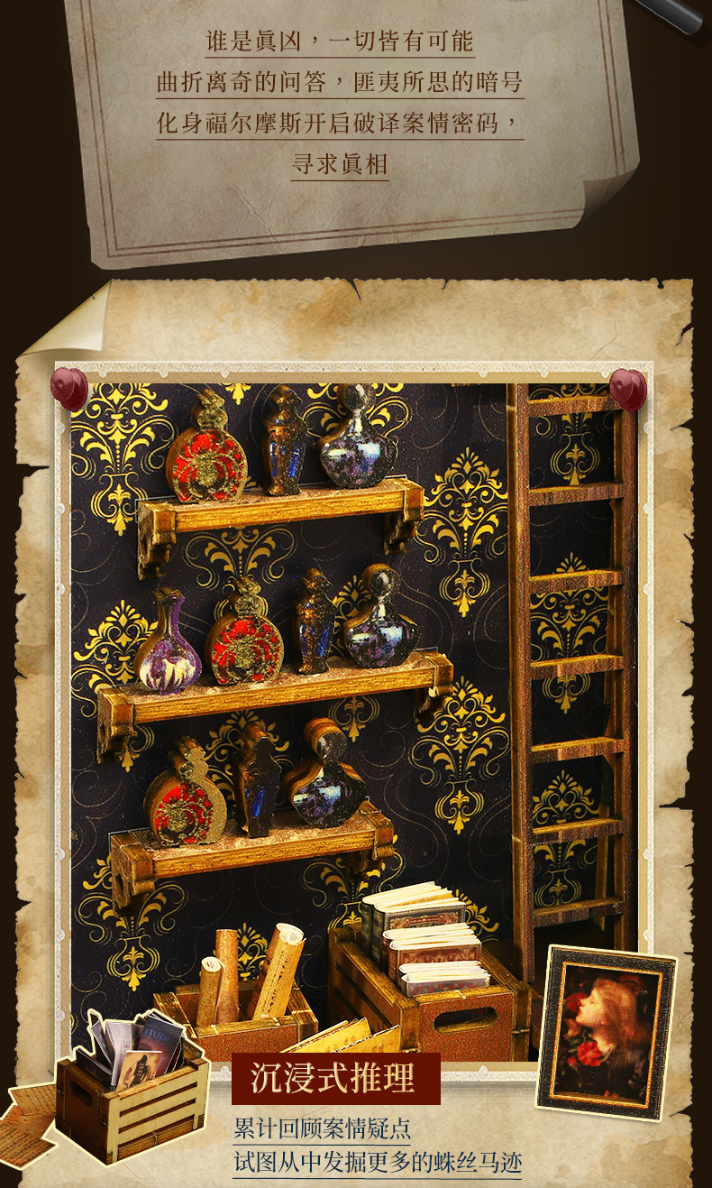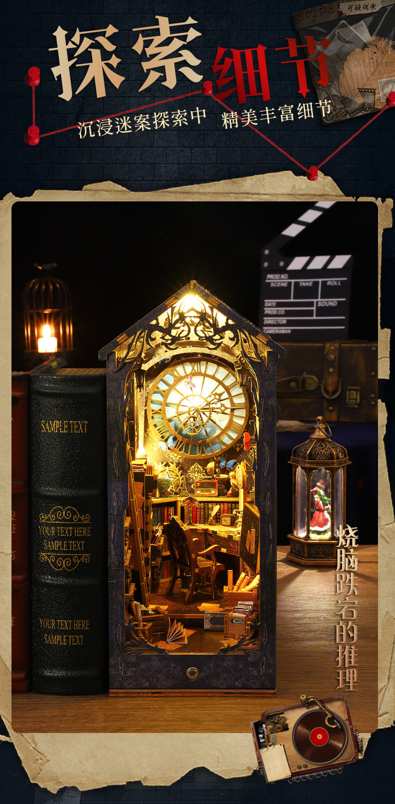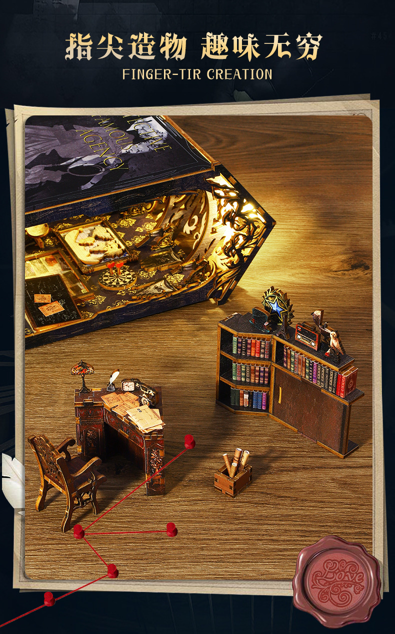Product Information: SL007-B Detective Agency + Small Movement, individual weight: 1.2KG, case of 18 pieces, box size: 29*6.3*20CM, finished size: 18*11*27.2CM