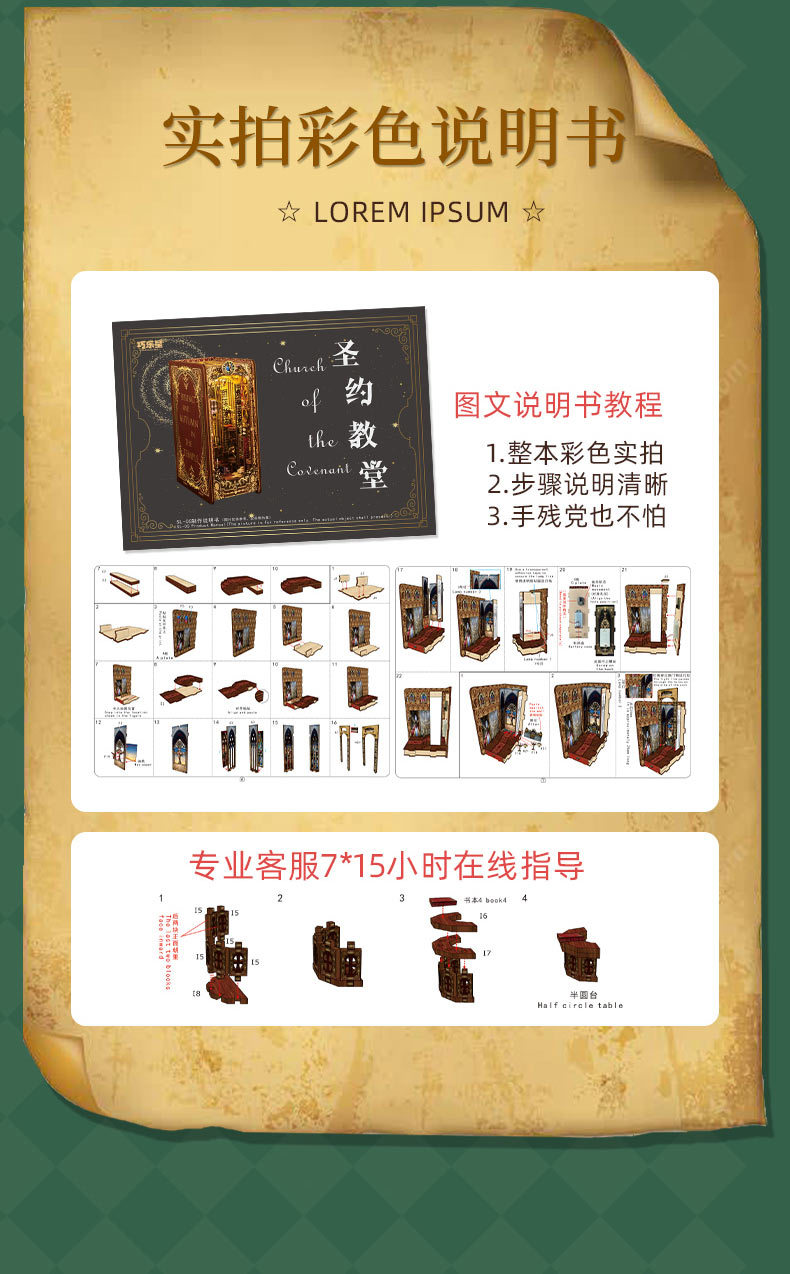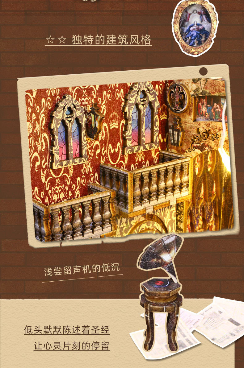 Product Information: SL005-A Covenant Church(Small movement needs to be purchased separately) Individual weight: 0.9KG per box, 24 pieces per product. Box dimensions: 29*5*20CM. Finished product dimensions: 16.5*9.7*24CM