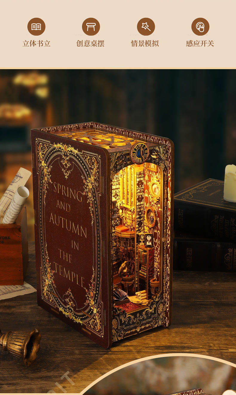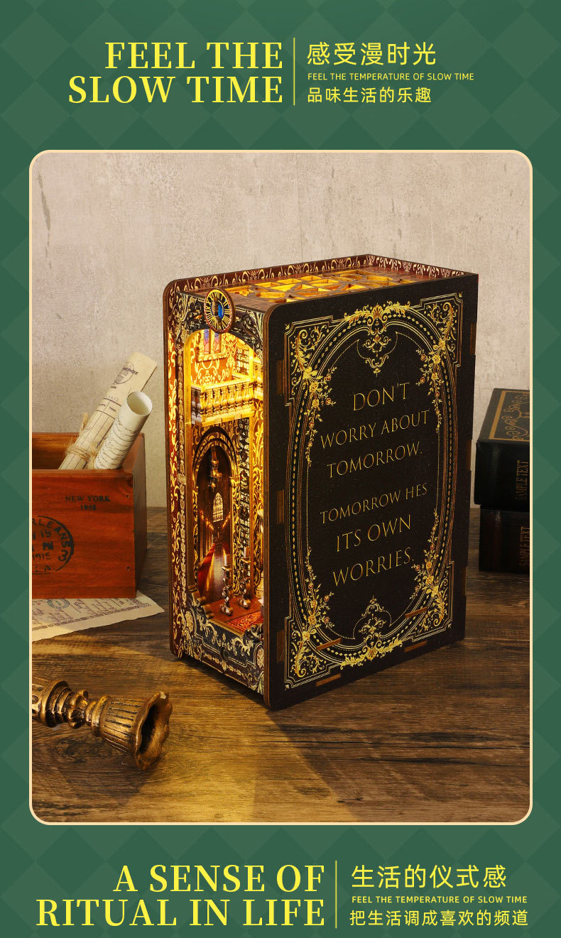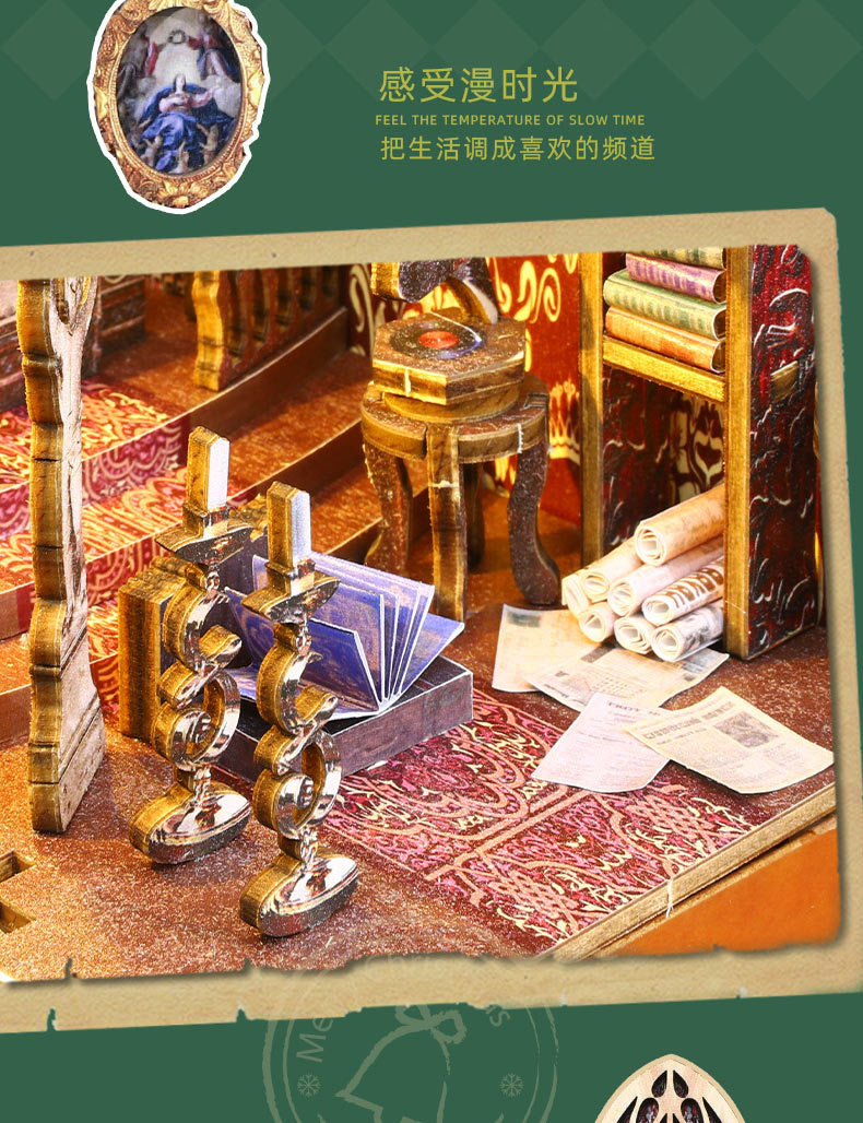 Standard equipment: full-color instruction manual, infrared motion sensor light kit, 1 bottle of alcohol glue (15 ml), screwdriver (mechanism is optional). Note: This model uses a small movement and requires an additional purchase; please bring your own 2 AA batteries!