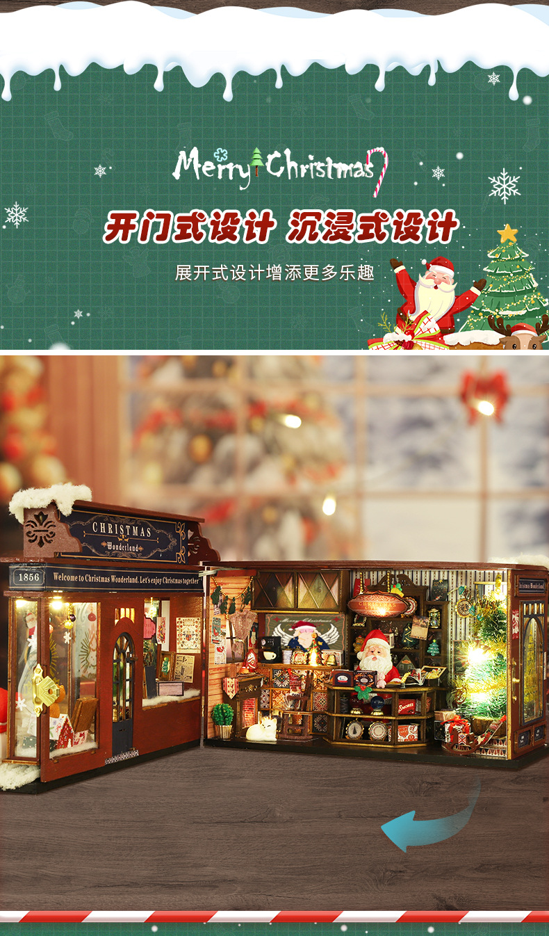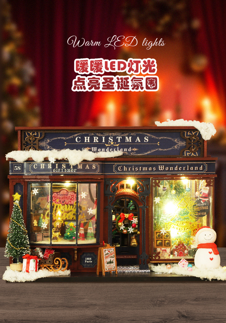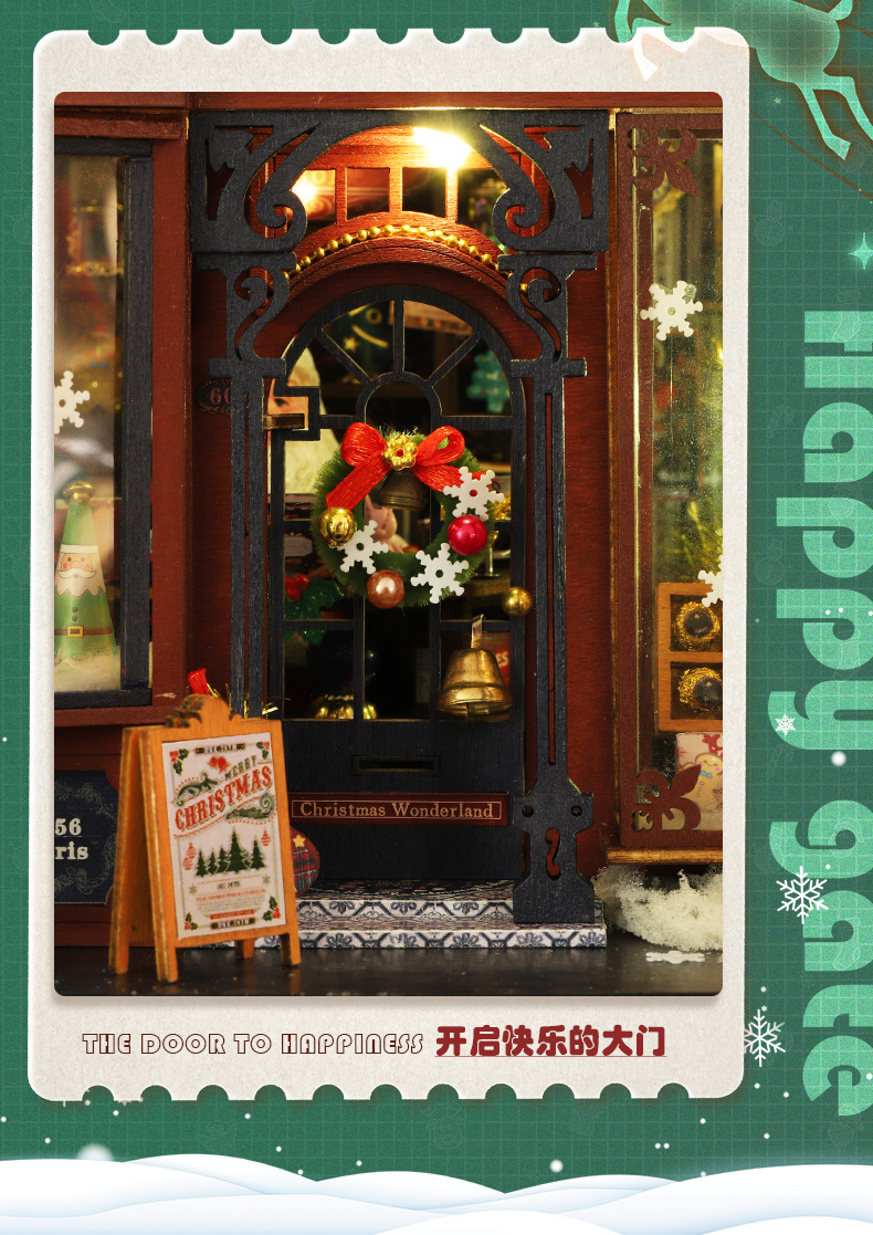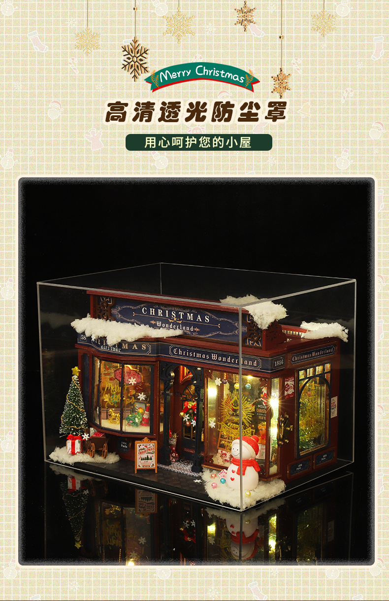 商品基本信息:ET001-A圣诞奇境(不带防尘罩)单个重量1.0KG一箱24个产品盒装尺寸:32*6*21CM成品尺寸:22.5*16.5*16.5CM