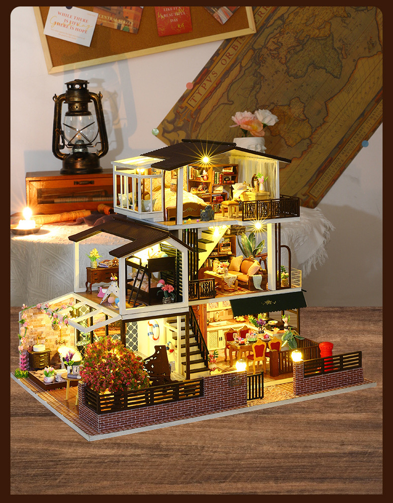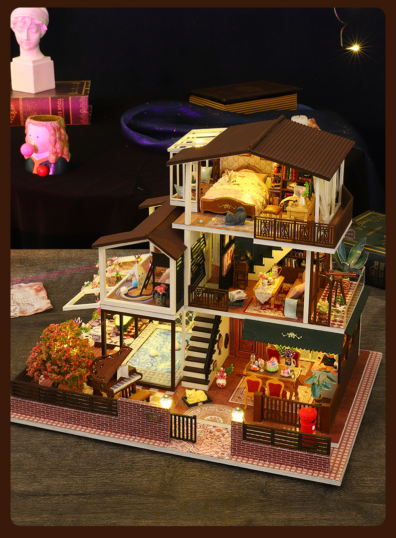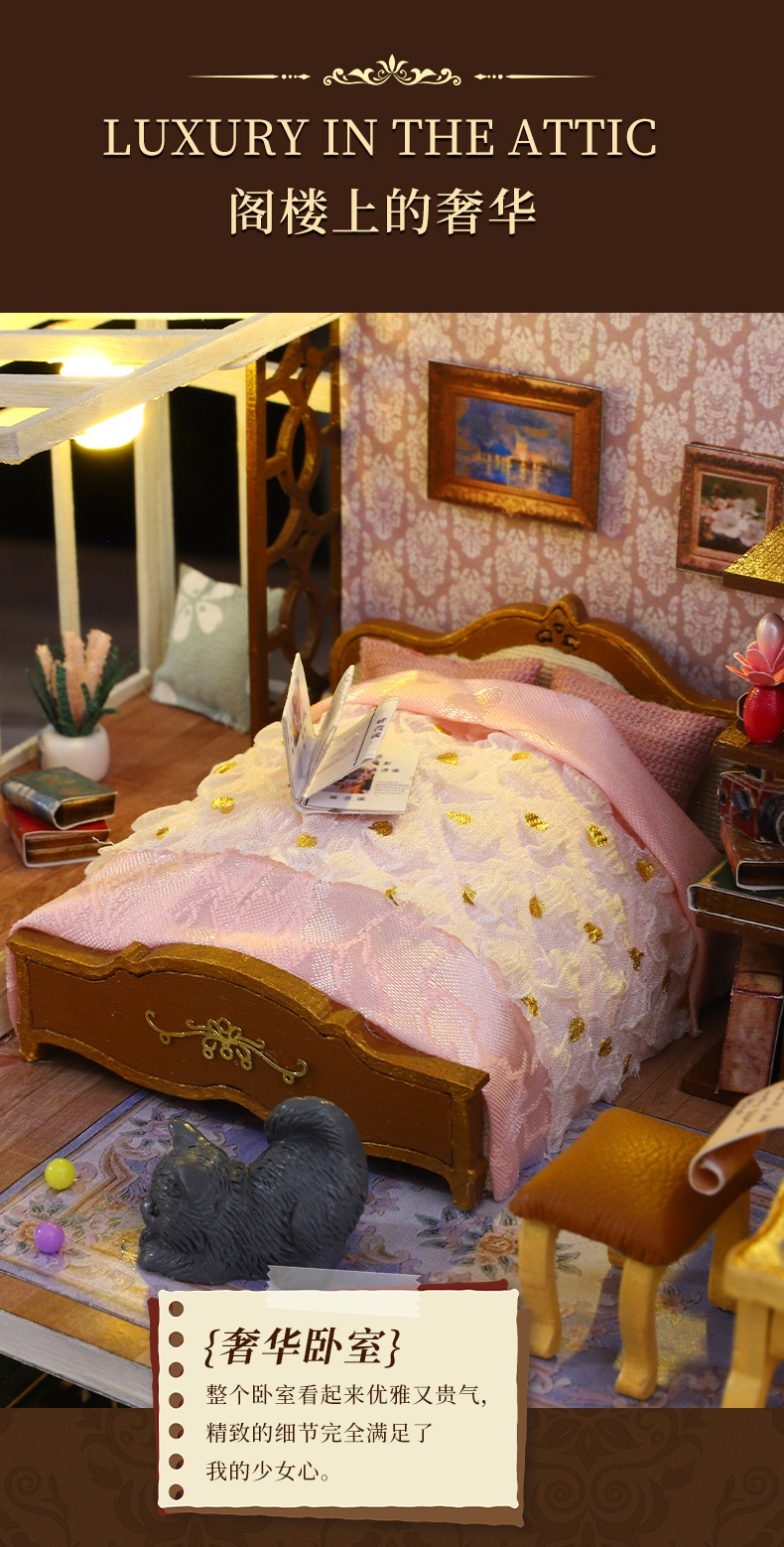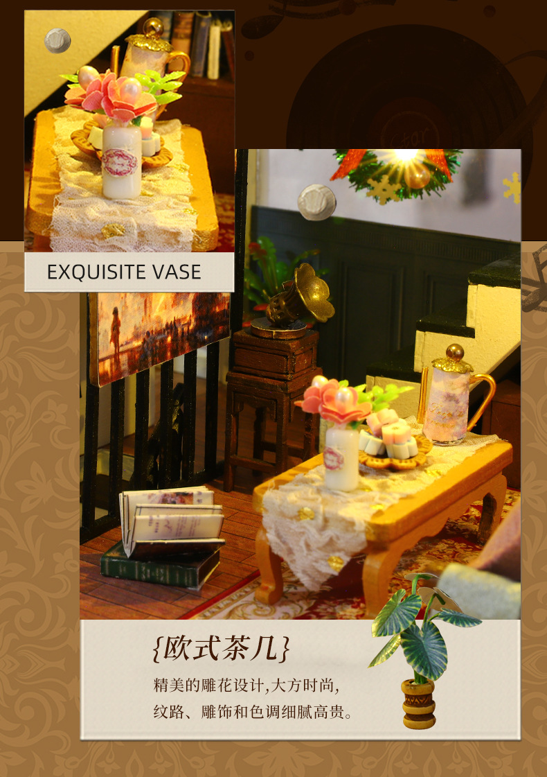 所有DIY小屋产品均为材料包,非成品,需要配合工具(镊子,直尺,小刀,螺丝刀,剪刀等)和快速胶水(U胶或酒精胶)制作才能完成,制作完成以后就是图片效果,批发均为原包装,不带工具和胶水,如果需要订购请移步至店铺工具配件分类项选购!