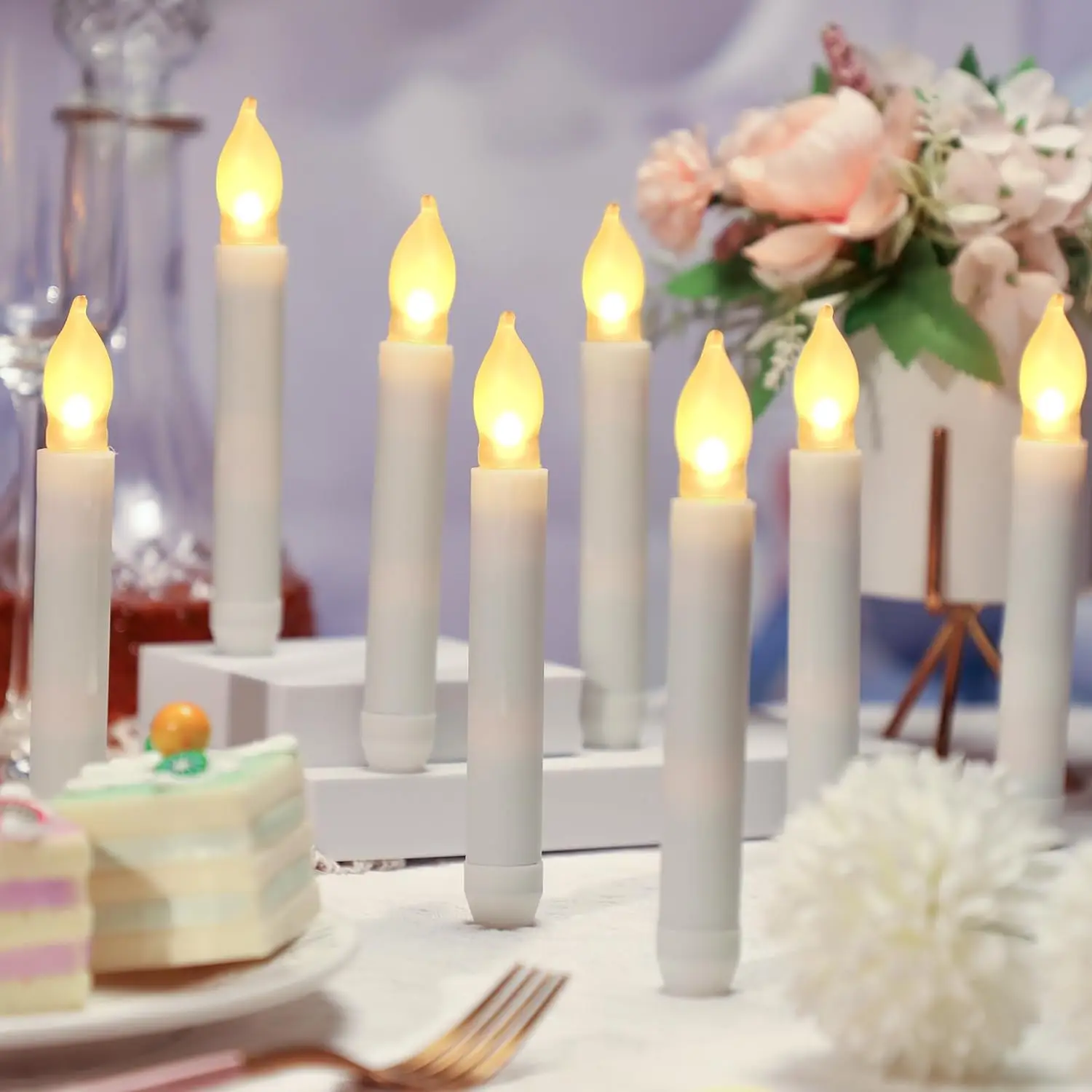 12支带电池LED蜡烛,带魔法棒漂浮蜡烛,LED蜡烛闪烁火焰,圣诞装饰