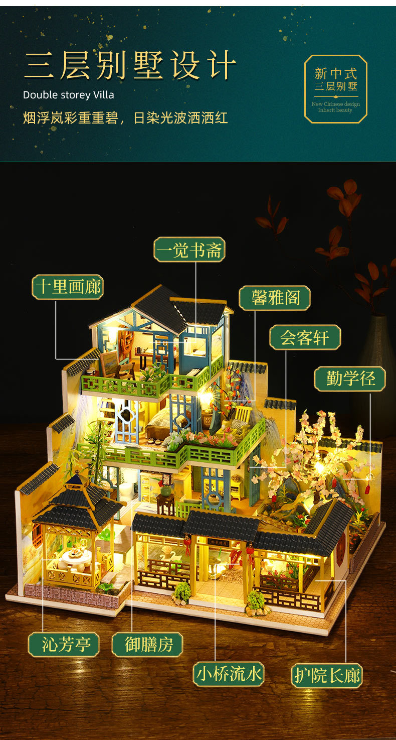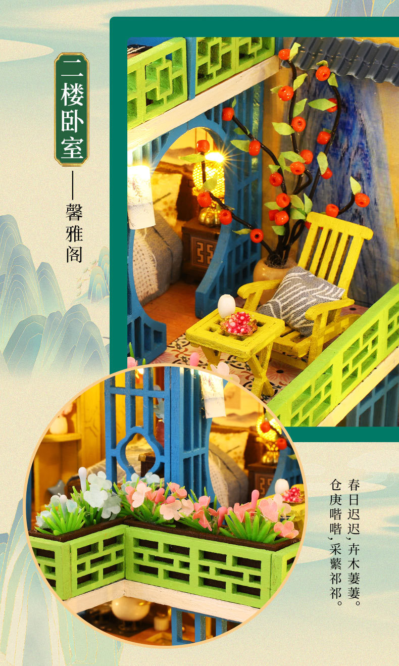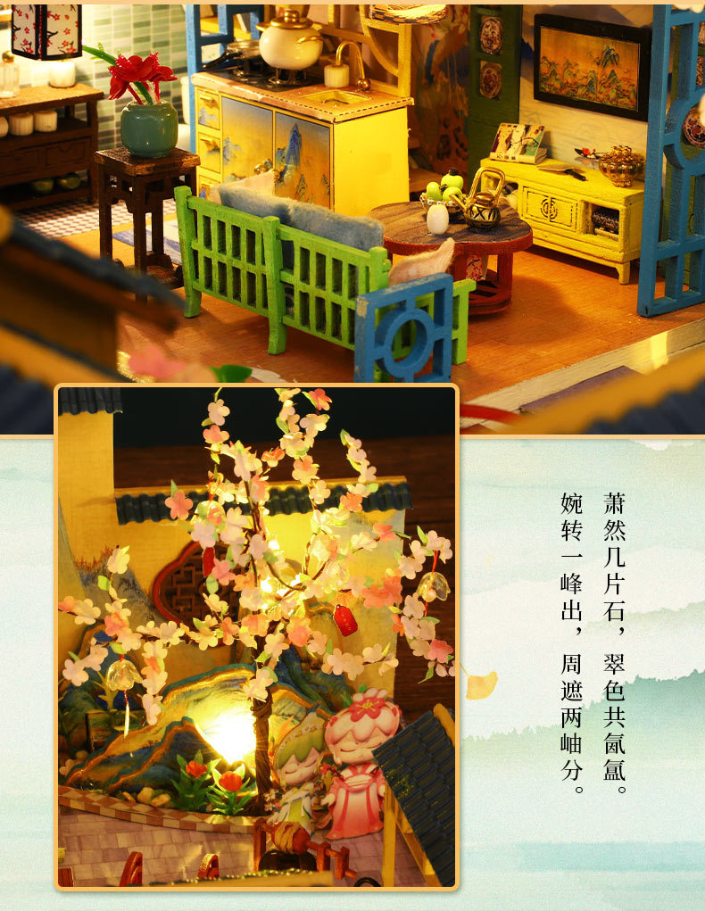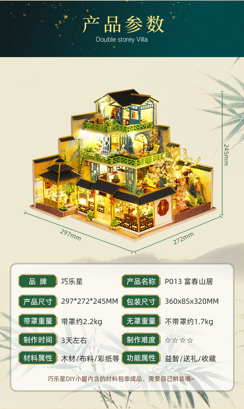 所有DIY小屋产品均为材料包,非成品,需要配合工具(镊子,直尺,小刀,螺丝刀,剪刀等)和快速胶水(U胶或酒精胶)制作才能完成,制作完成以后就是图片效果,批发均为原包装,不带工具和胶水,如果需要订购请移步至店铺工具配件分类项选购!
