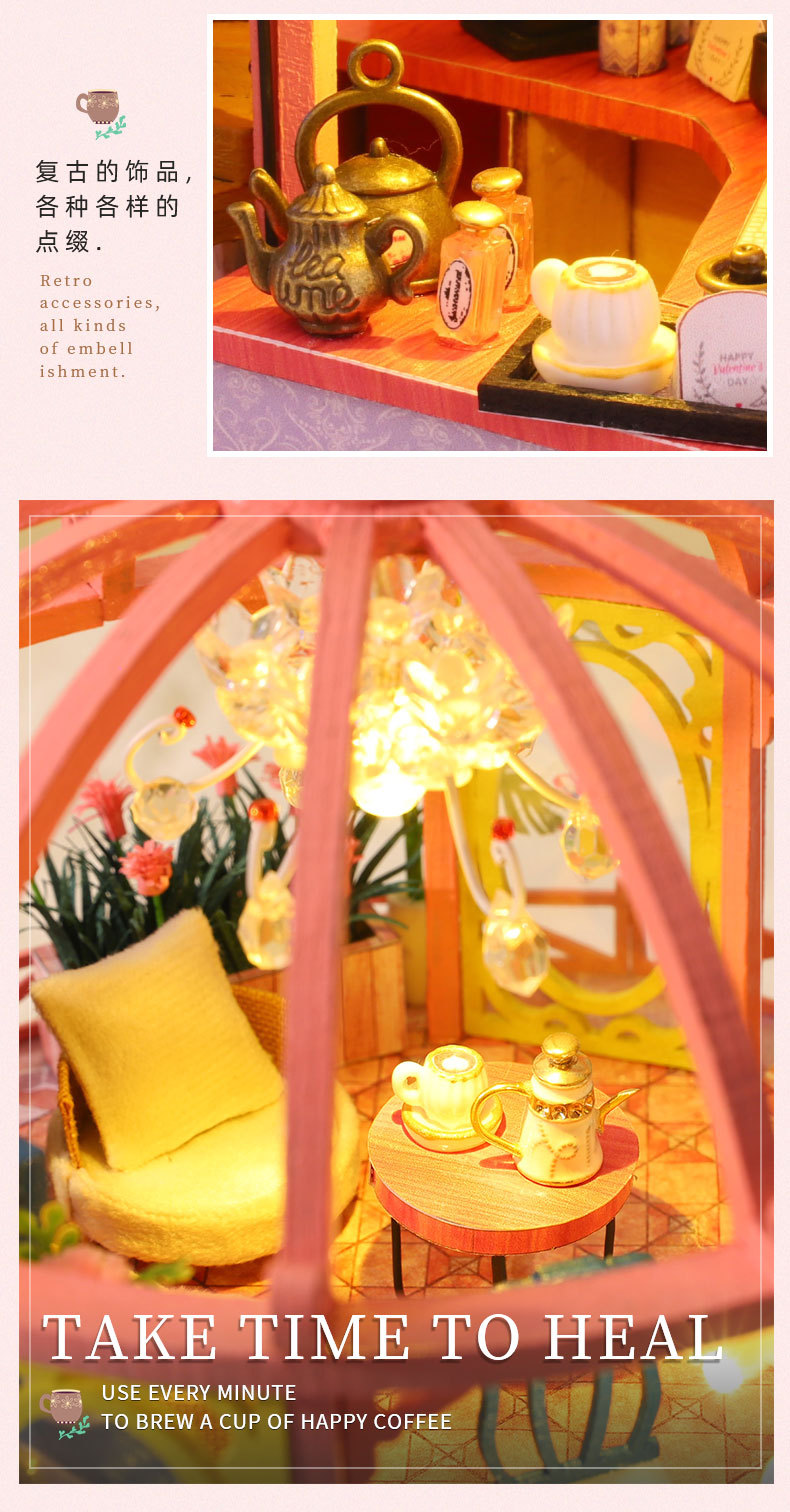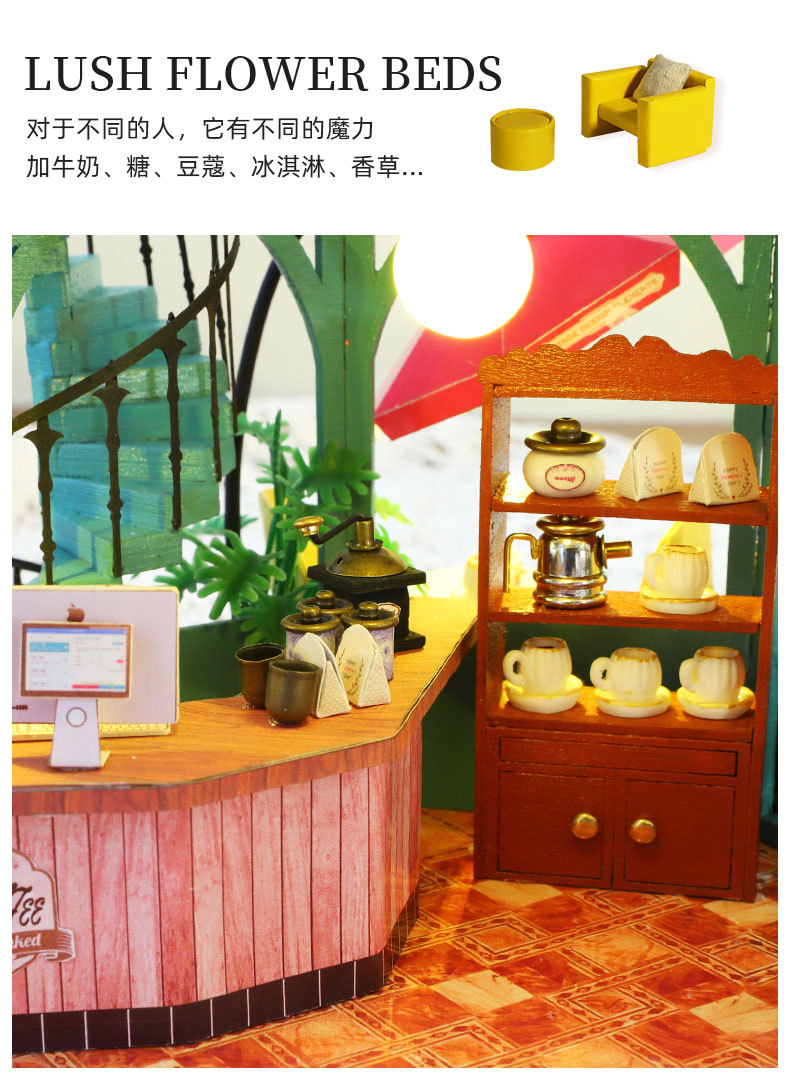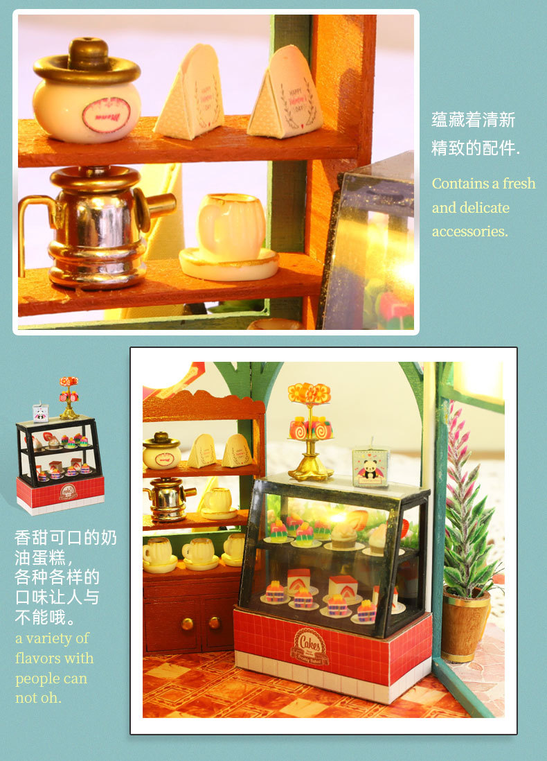 所有DIY小屋产品均为材料包,非成品,需要配合工具(镊子,直尺,小刀,螺丝刀,剪刀等)和快速胶水(U胶或酒精胶)制作才能完成,制作完成以后就是图片效果,批发均为原包装,不带工具和胶水,如果需要订购请移步至店铺工具配件分类项选购!