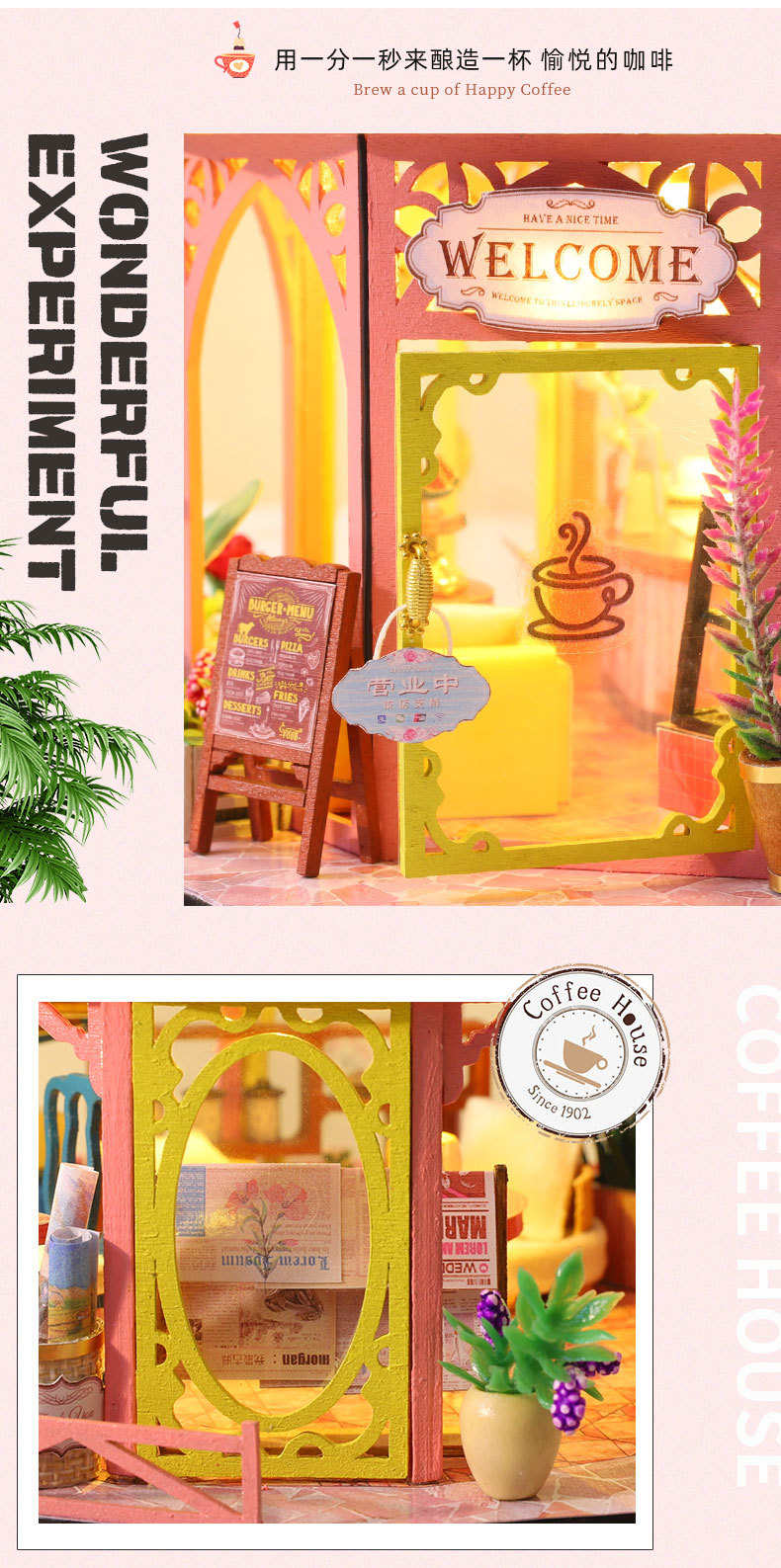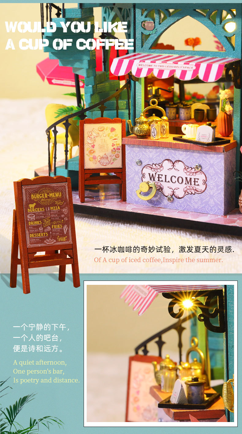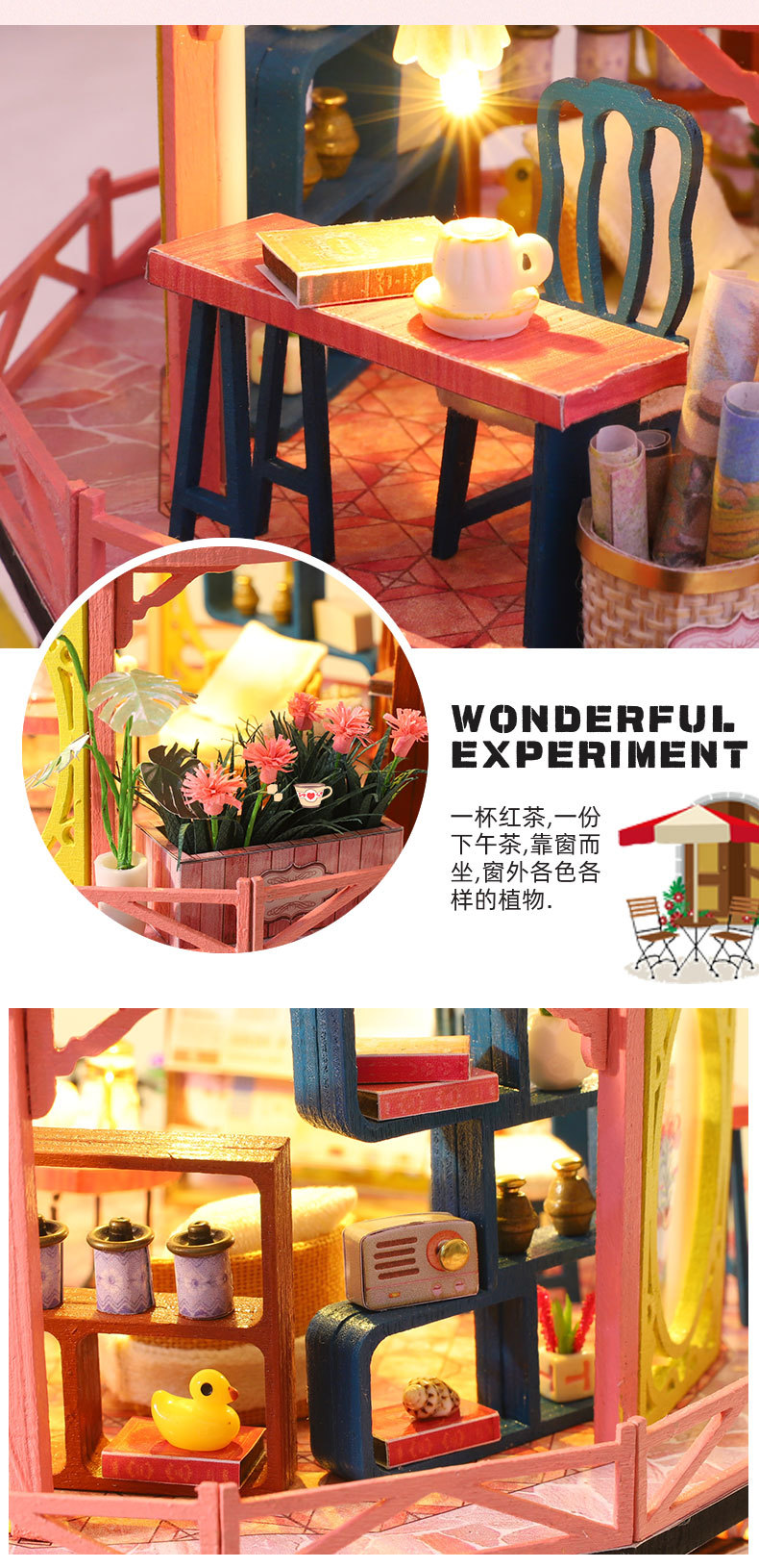 所有DIY小屋产品均为材料包,非成品,需要配合工具(镊子,直尺,小刀,螺丝刀,剪刀等)和快速胶水(U胶或酒精胶)制作才能完成,制作完成以后就是图片效果,批发均为原包装,不带工具和胶水,如果需要订购请移步至店铺工具配件分类项选购!