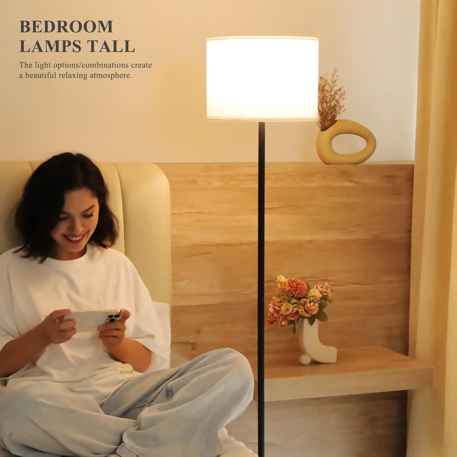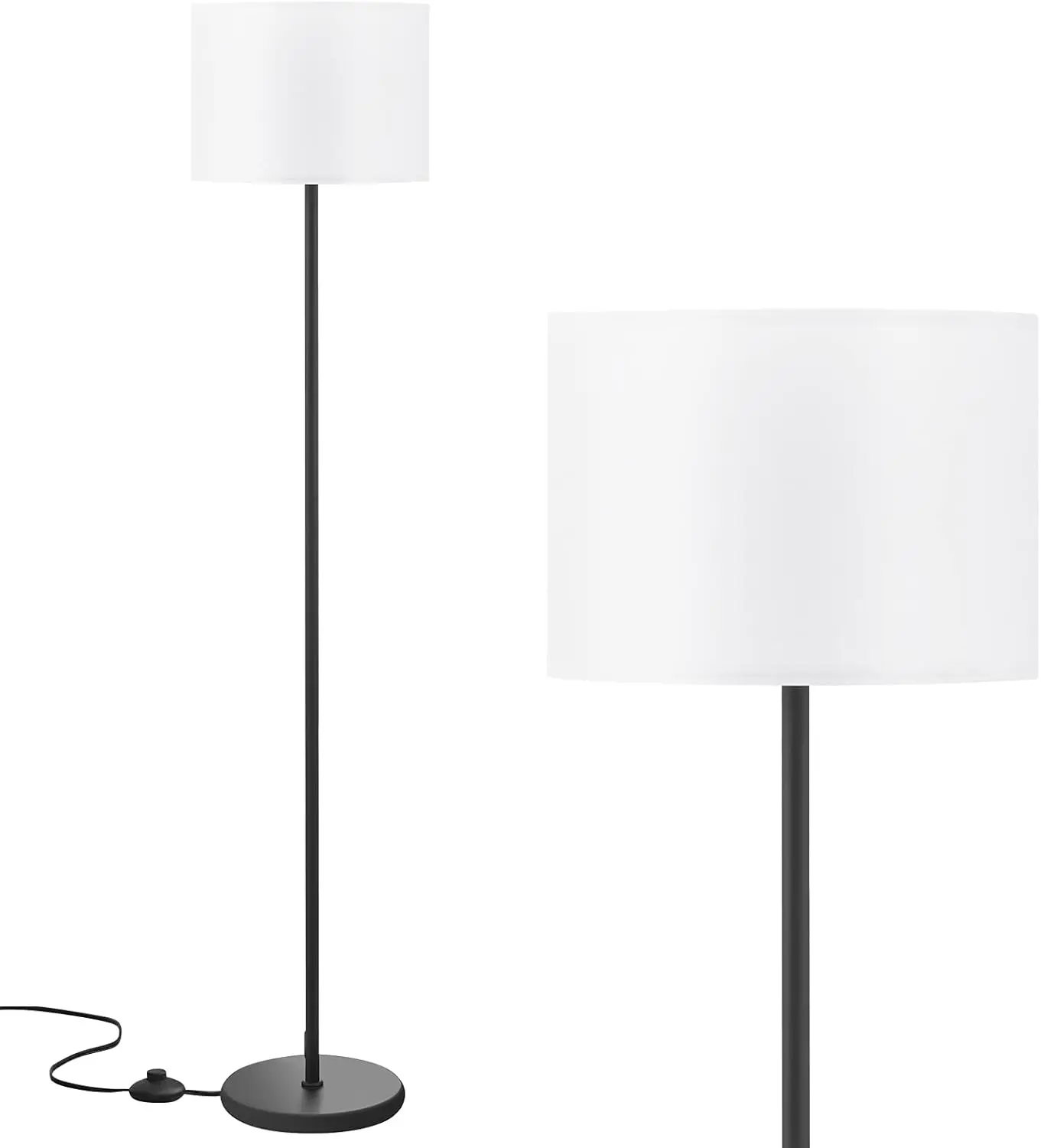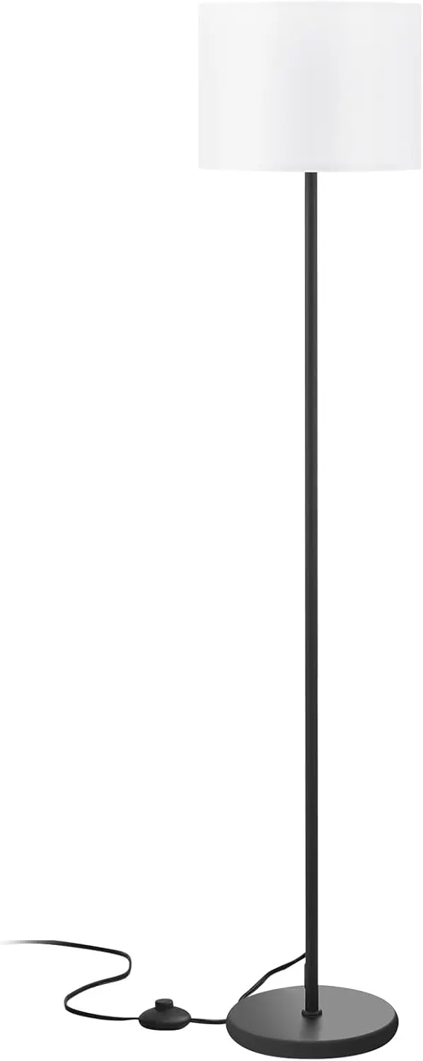 现代白色灯罩落地灯脚踏开关152.4厘米黑杆简单设计客厅餐厅厨房小高度