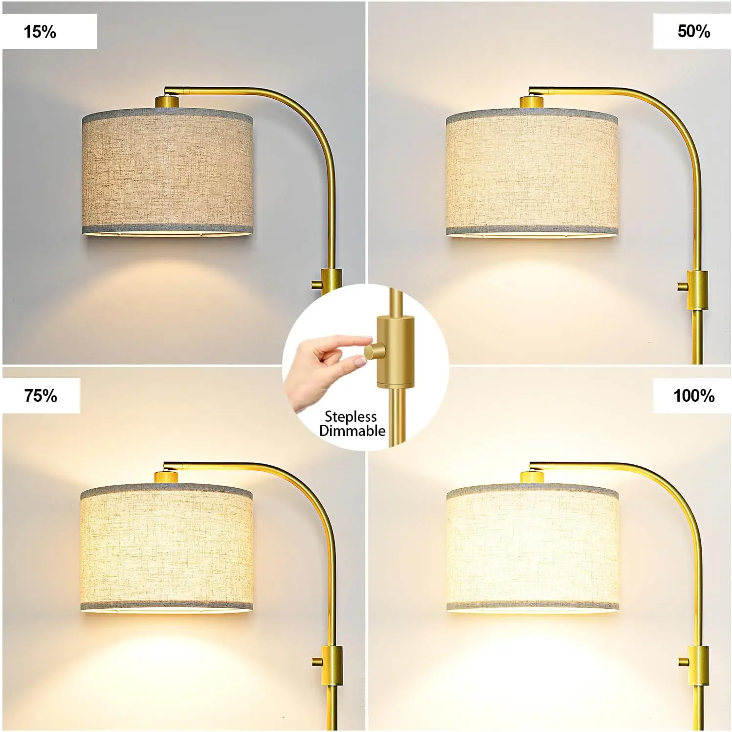 可调金色弧形落地灯1200流明发光二极管灯泡亚麻灯罩客厅卧室阅览室日托高光