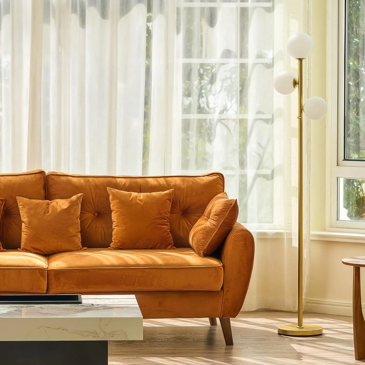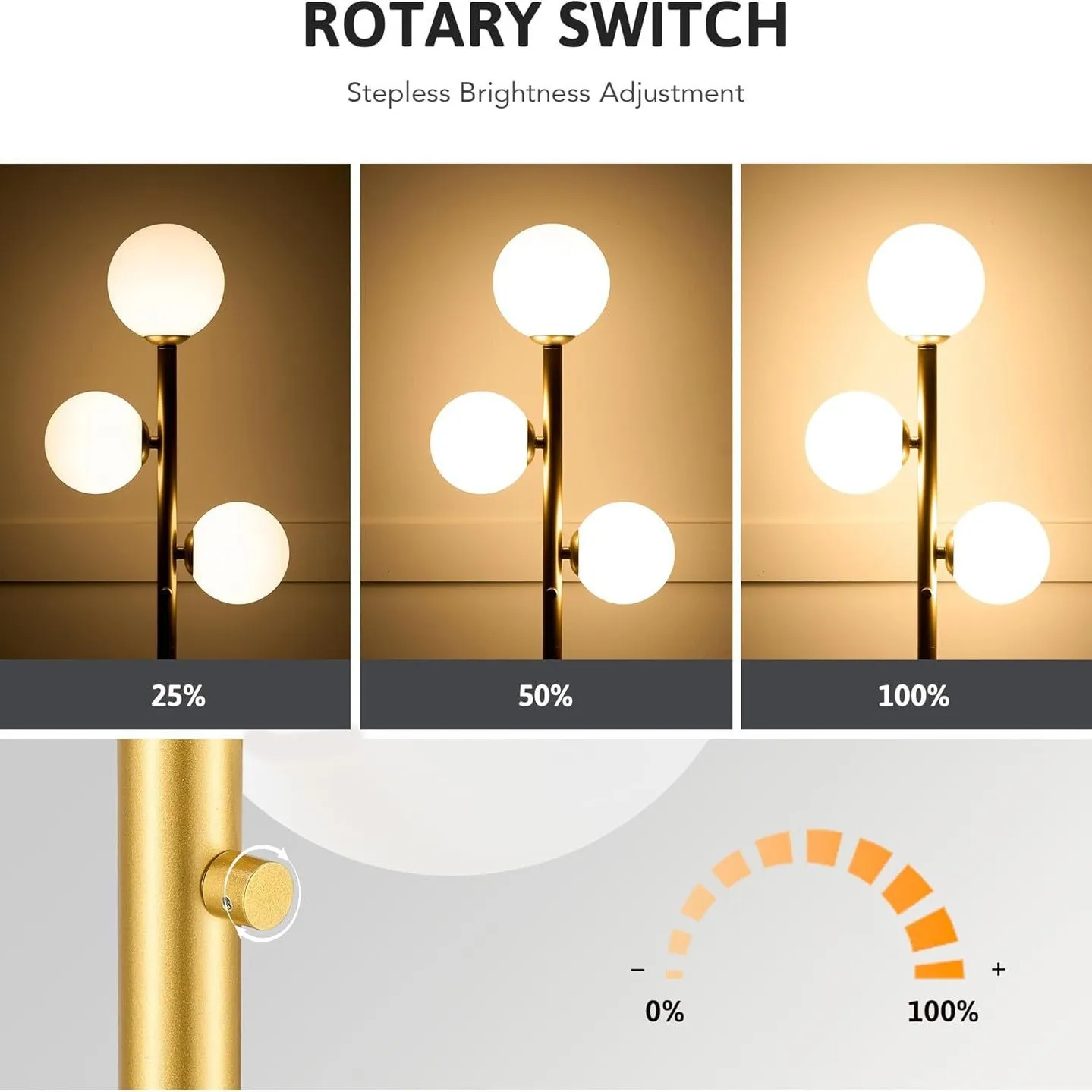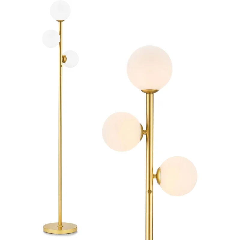 现代高杆发光二极管落地灯可调光金色设计,适用于卧室办公室和客厅,配有G9底座