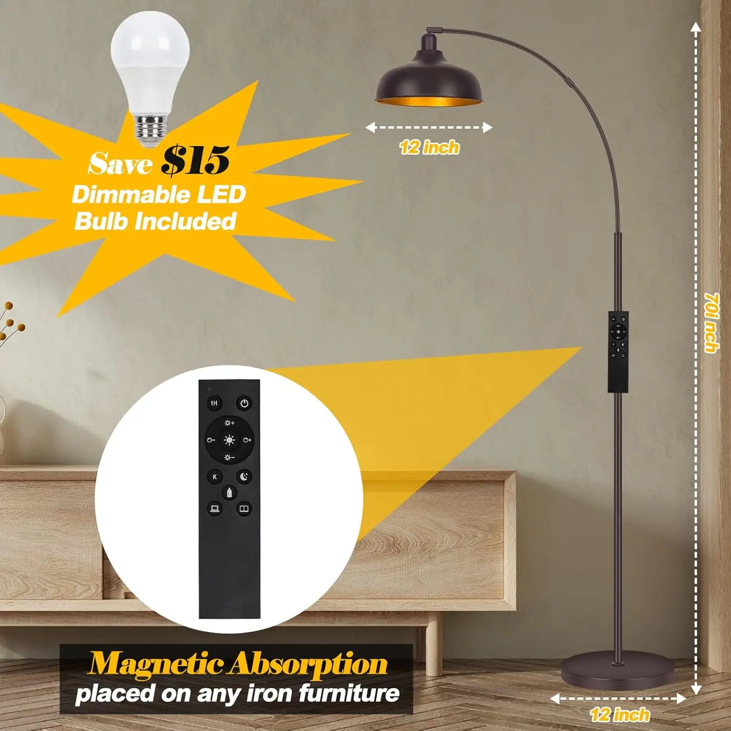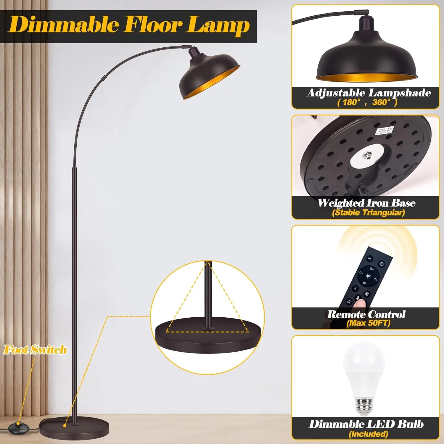 弧形青铜拱形落地灯遥控无限可调发光二极管高光垂直客厅阅读轻金属