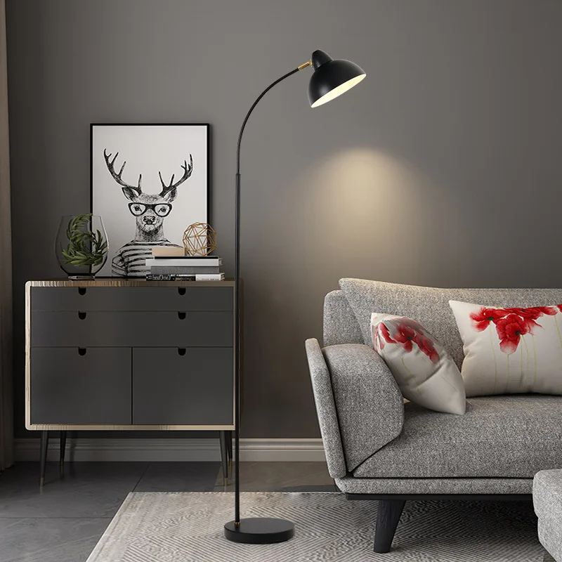 美式金属发光二极管落地灯现代设计客厅卧室可更换灯泡复古北欧风格钓鱼图案
