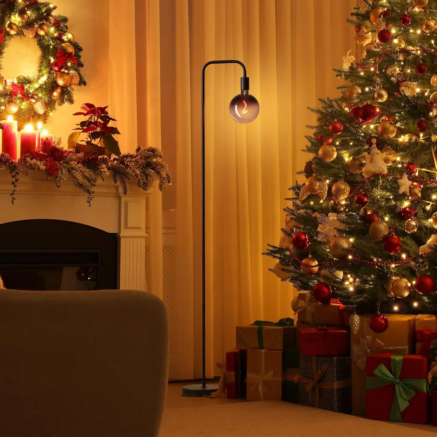 现代发光二极管落地灯简约工业设计6英寸高透明黑色玻璃地球仪客厅保暖E27