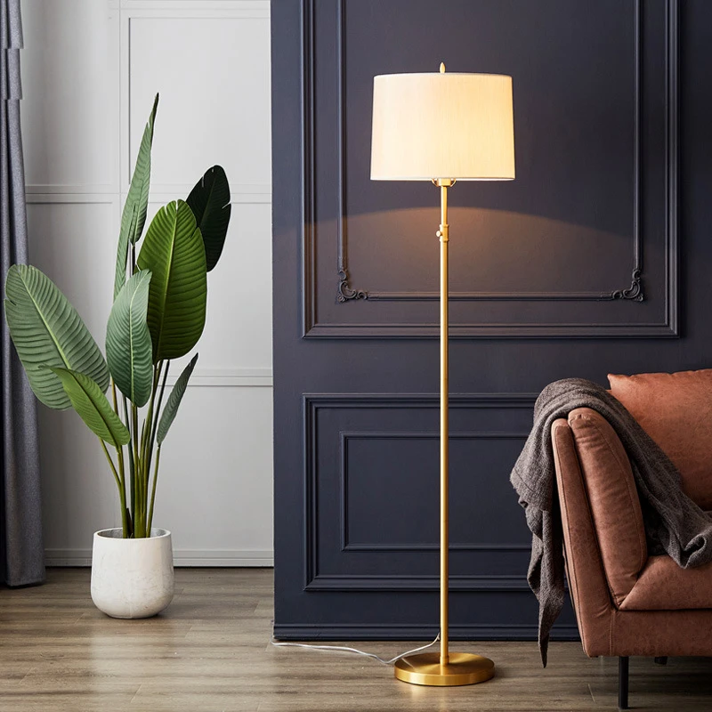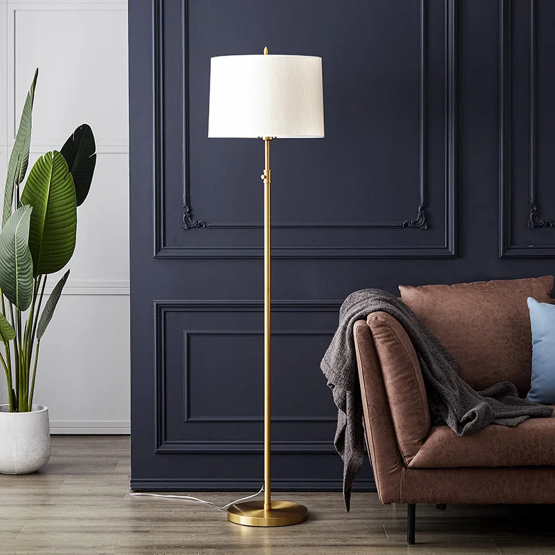 现代豪华全铜落地灯美式风格发光二极管灯可调客厅书房卧室床头直立灯