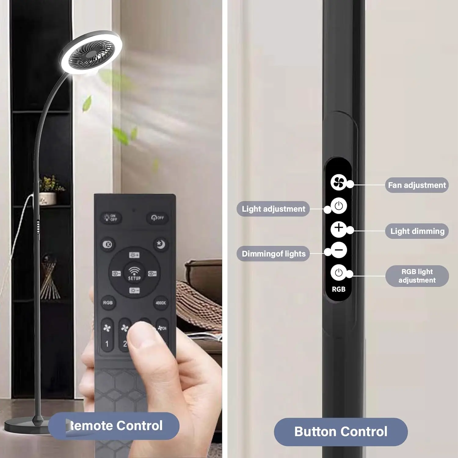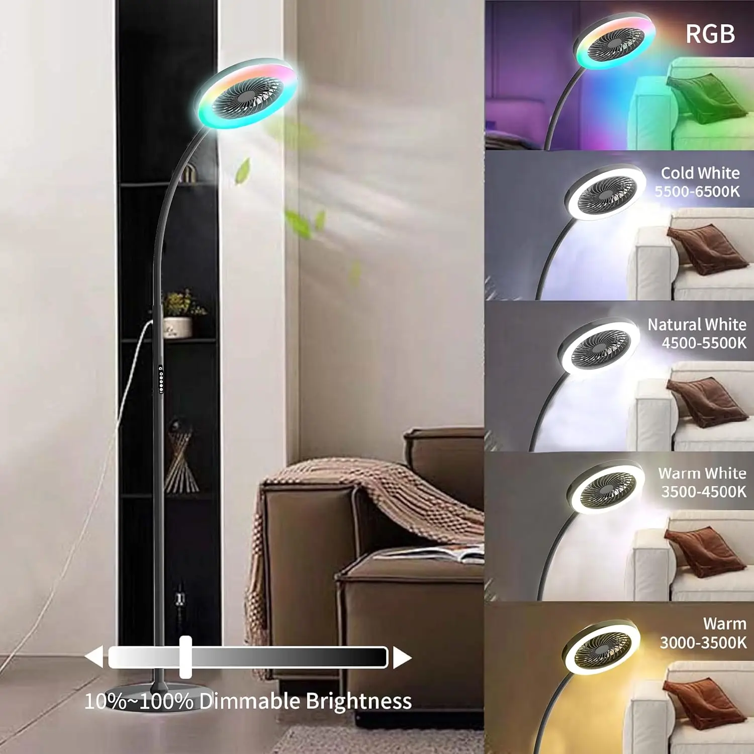 RGB 18W/1500毫米发光二极管落地灯遥控鹅颈无限可调3000k-6000k调光器无限可调