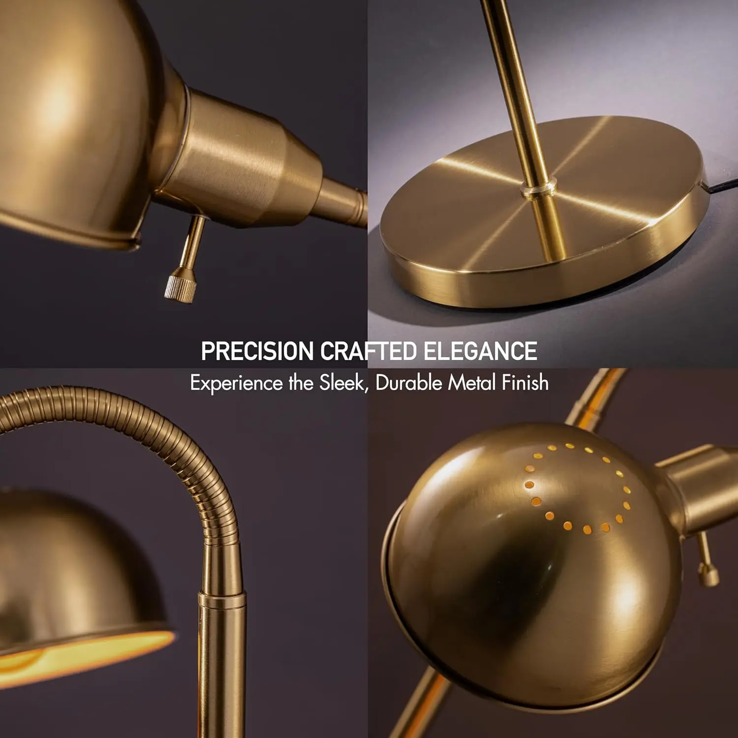 仿古青铜10英寸可调落地灯柔性鹅颈旋转灯罩E26阅读卧室客厅插座