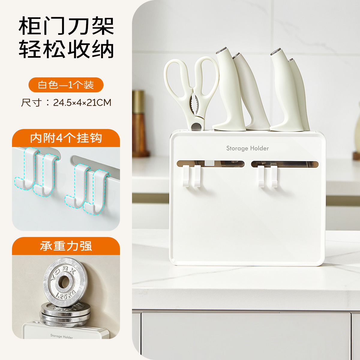 gny cabinet door knife rest-white +4 hooks