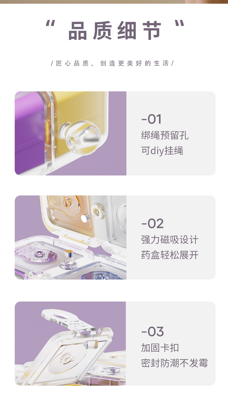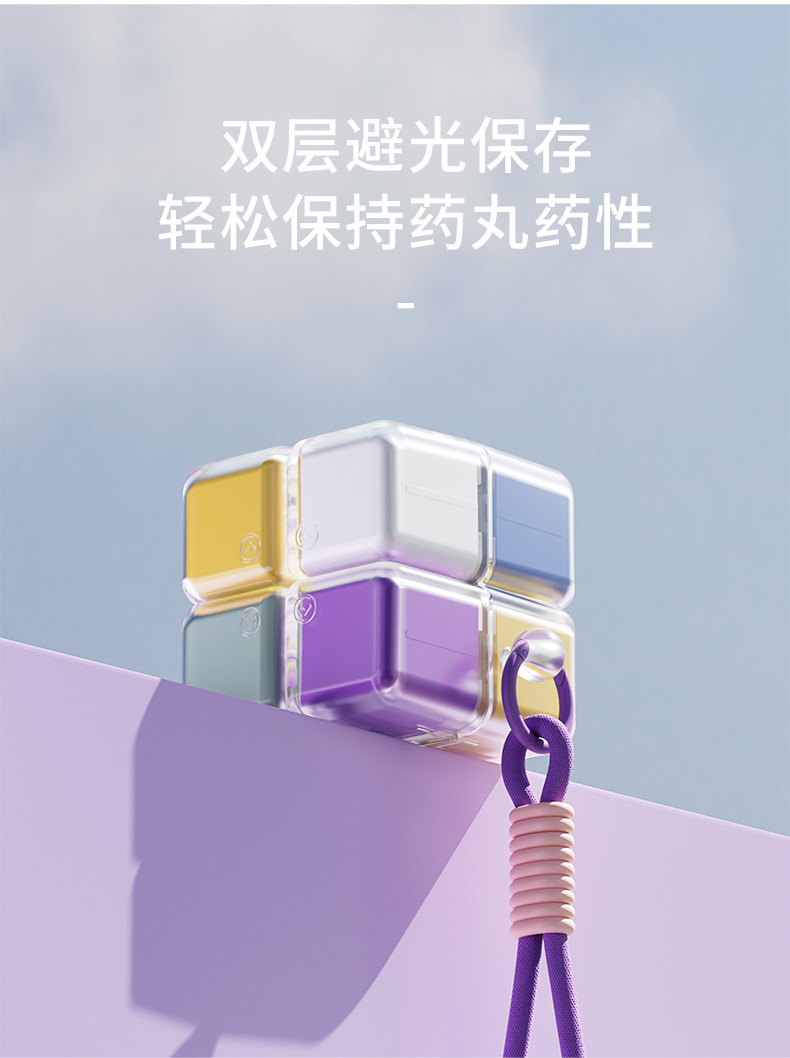 [purple with lanyard] magnetic cube medicine box