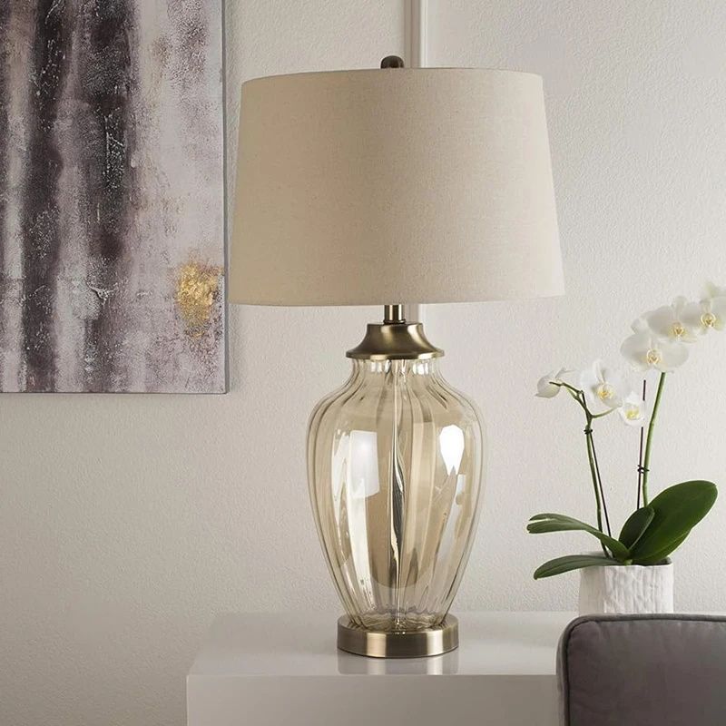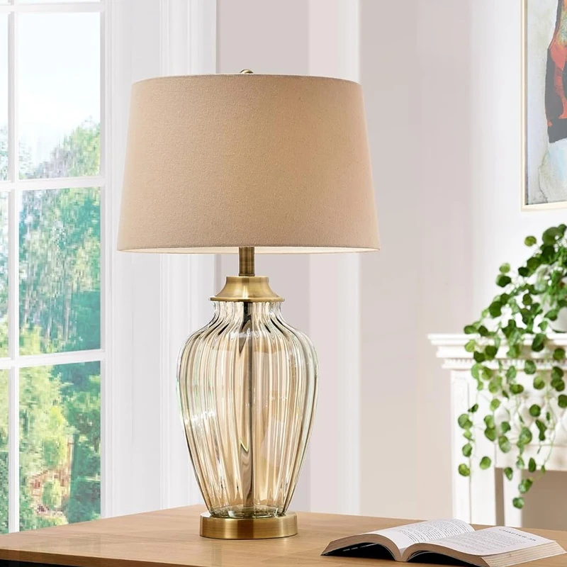 高金色凝视玻璃台灯,米色青铜饰面