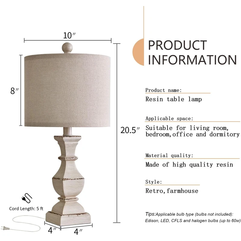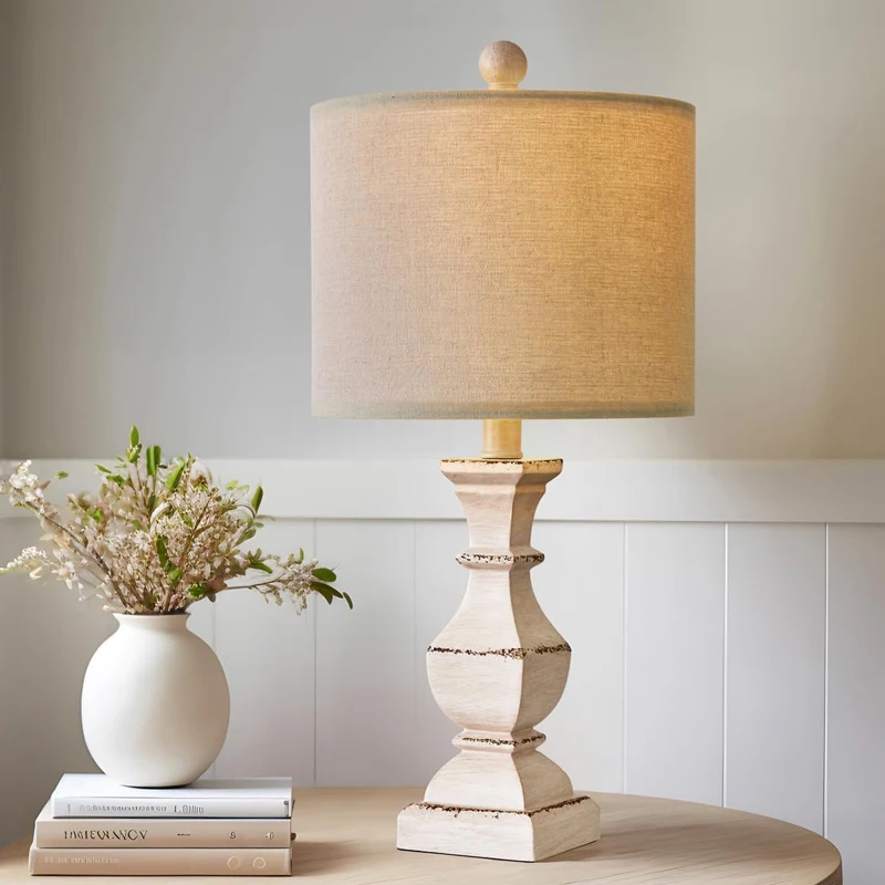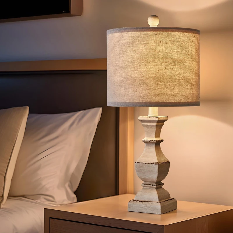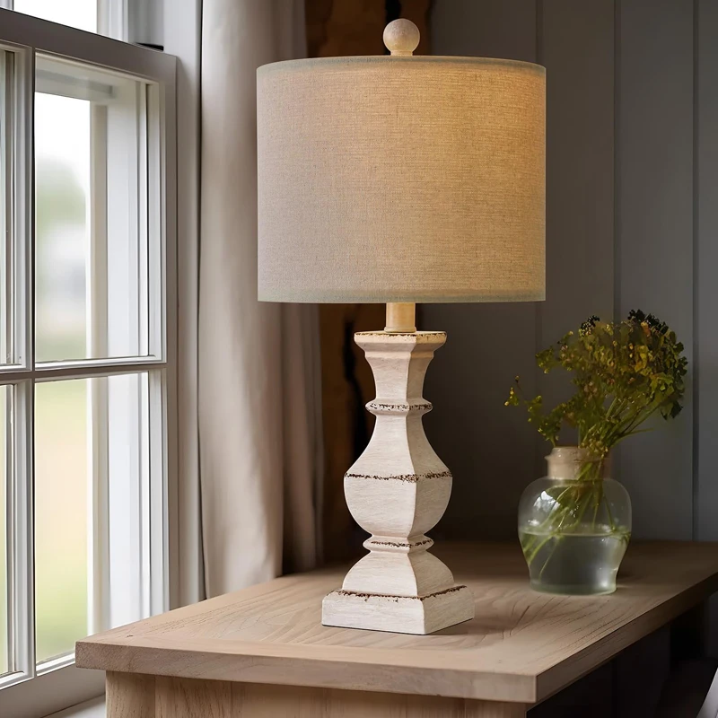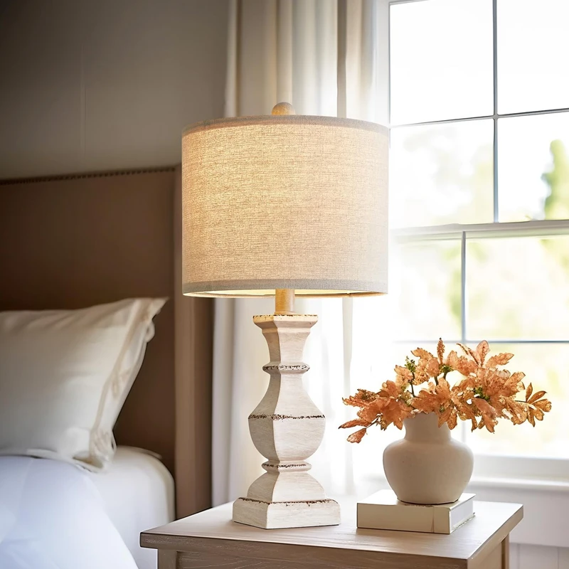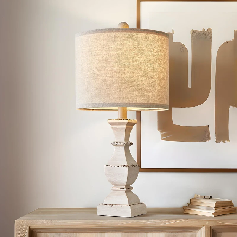 复古农家台灯卧室水洗白色老化传统床头柜小空间灯