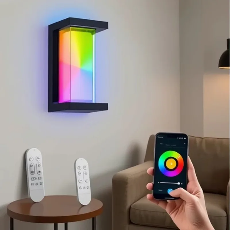 15w智能无线RGBW发光二极管户外壁灯铝IP65防水壁灯,带应用程序/声控彩色氛围灯