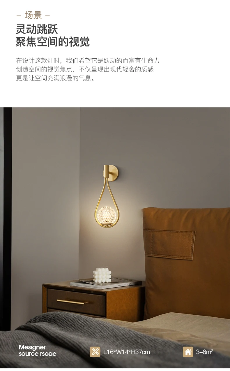 现代简约床头壁灯卧室客厅楼梯灯室内照明装饰玻璃创意金