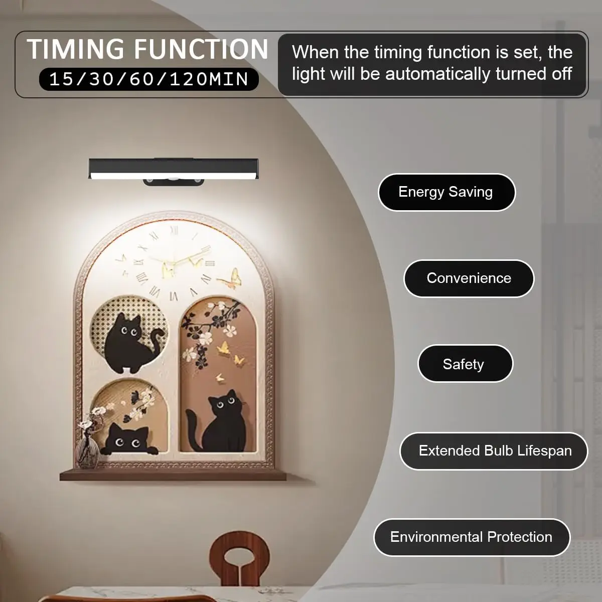 2件式发光二极管无线可调光图片灯电池供电磁性定时器壁灯3照明显示艺术客厅