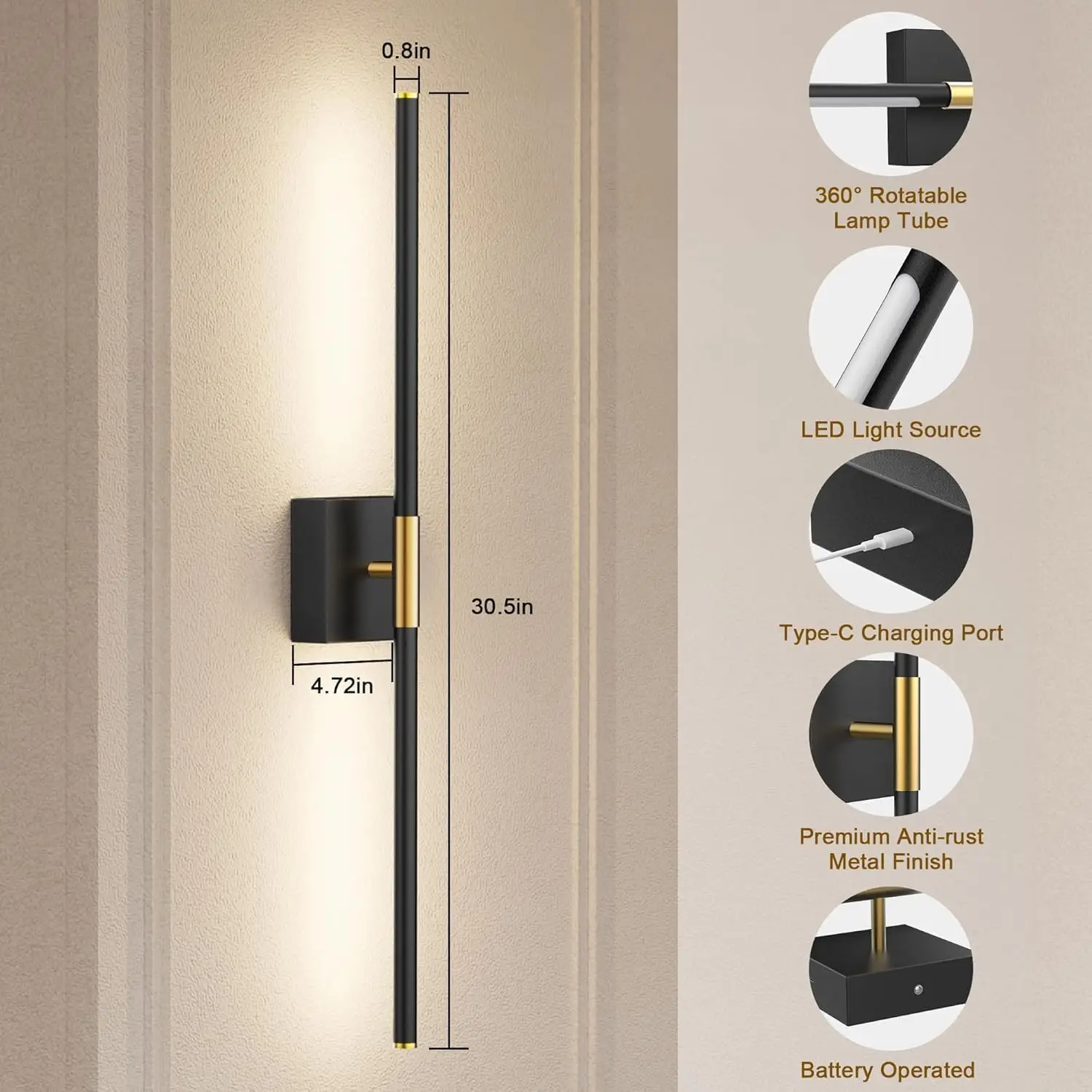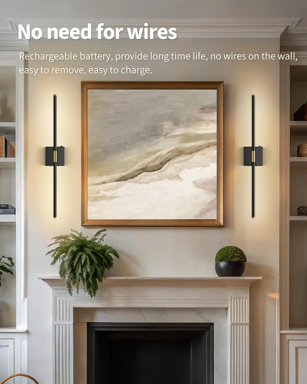 2件式360旋转8000毫安时发光二极管可调光图片灯USB充电电池供电客厅卧室壁灯