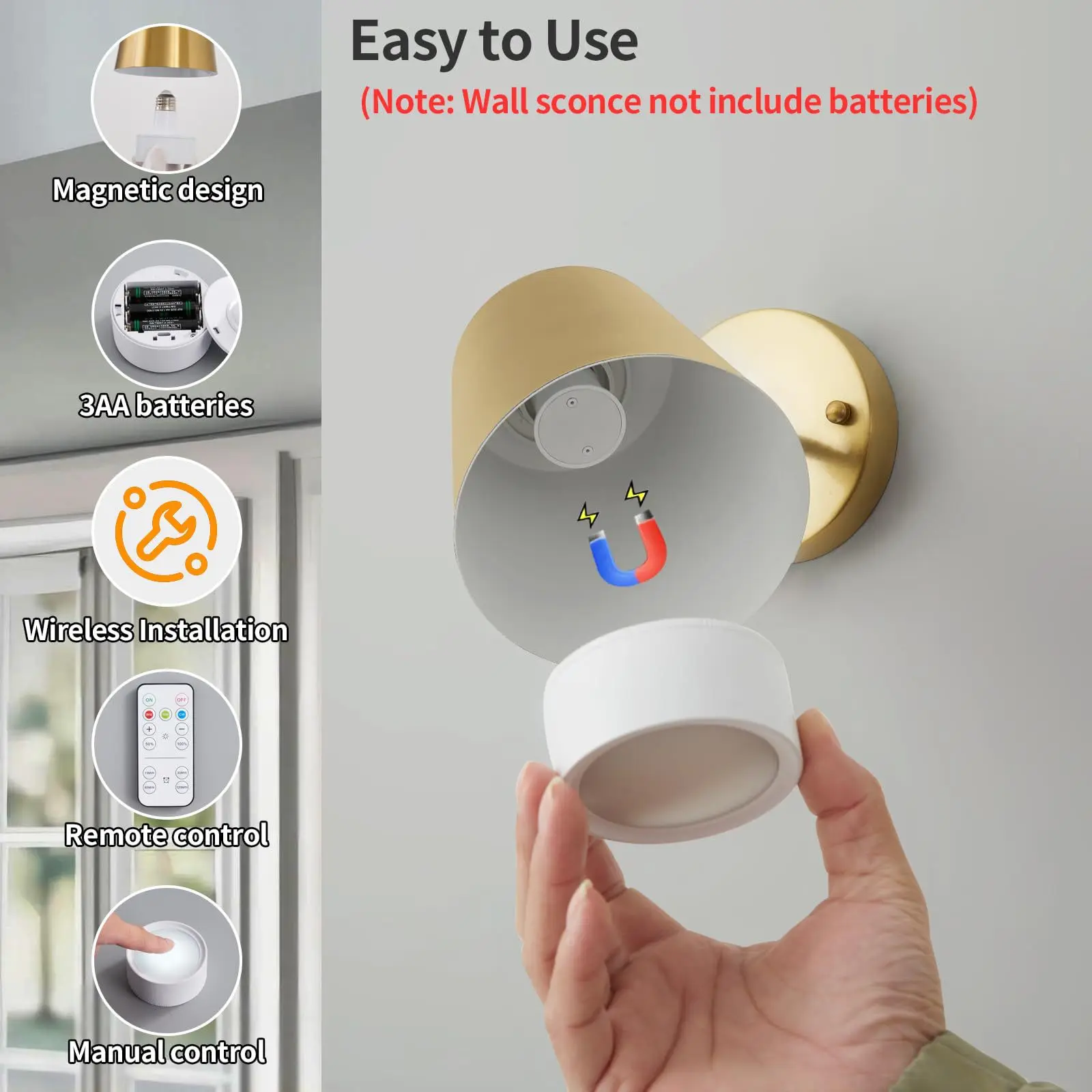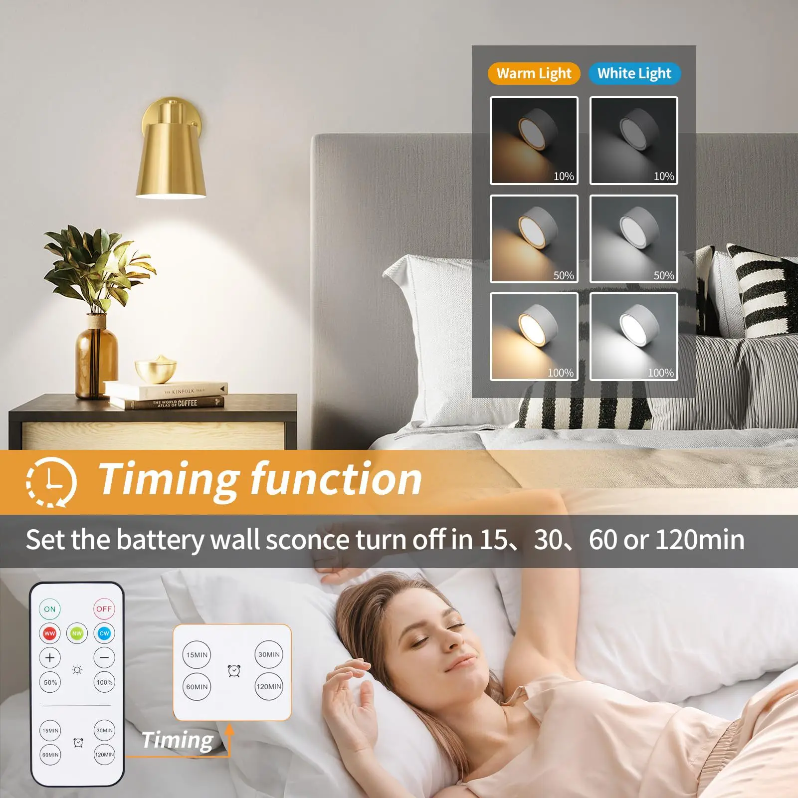 北欧复古风格壁灯,带无线充电金属床头灯,适用于客厅和卧室