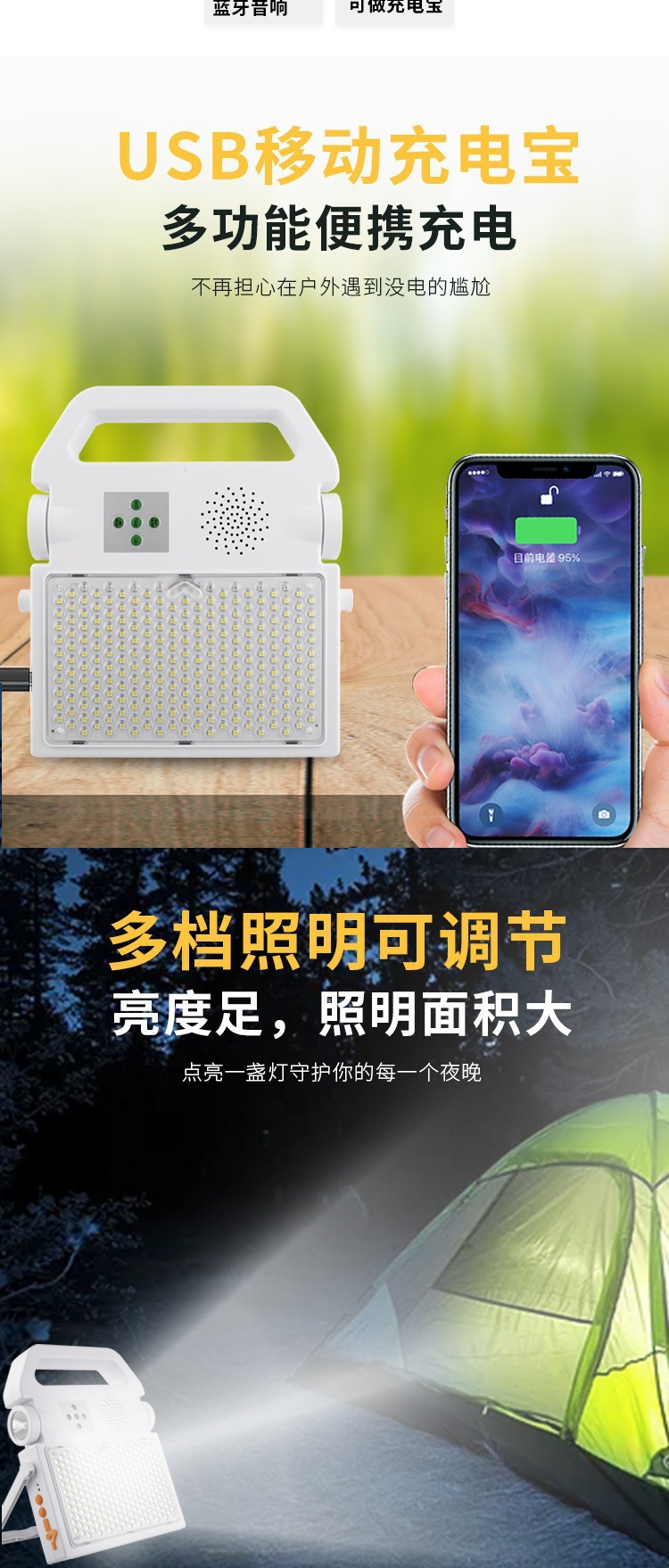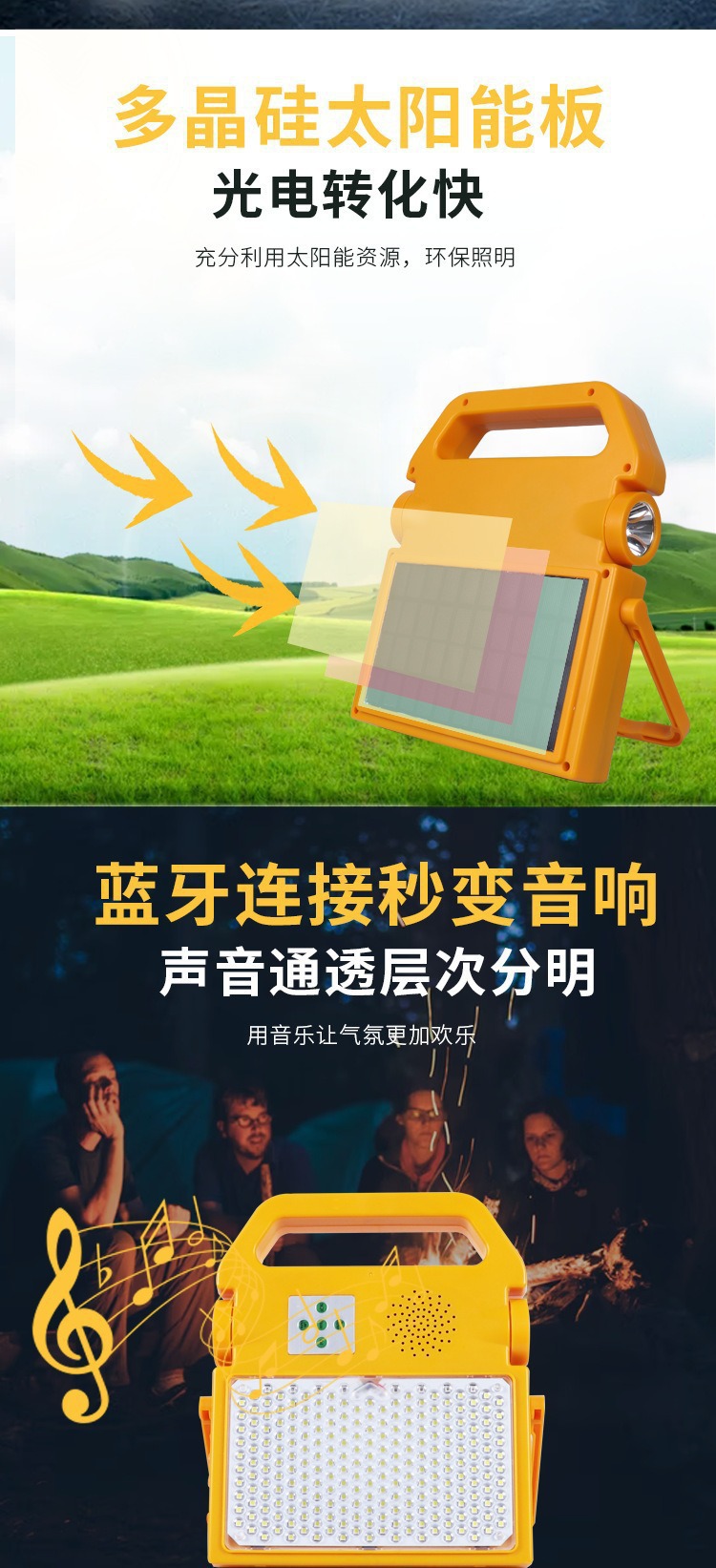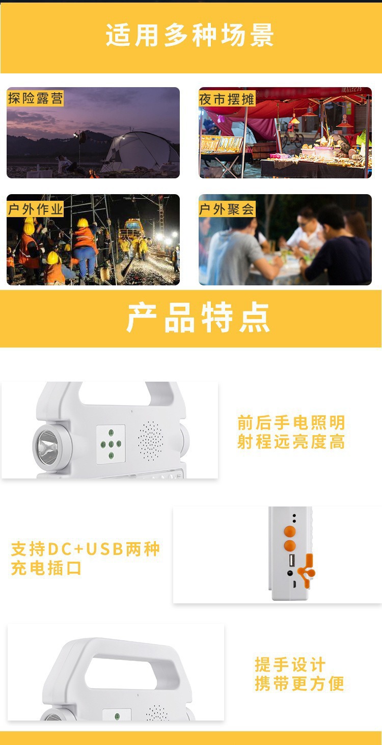 solar emergency lighting outdoor probe portable torch bluetooth audio portable charging foreign trade cross-border wholesale