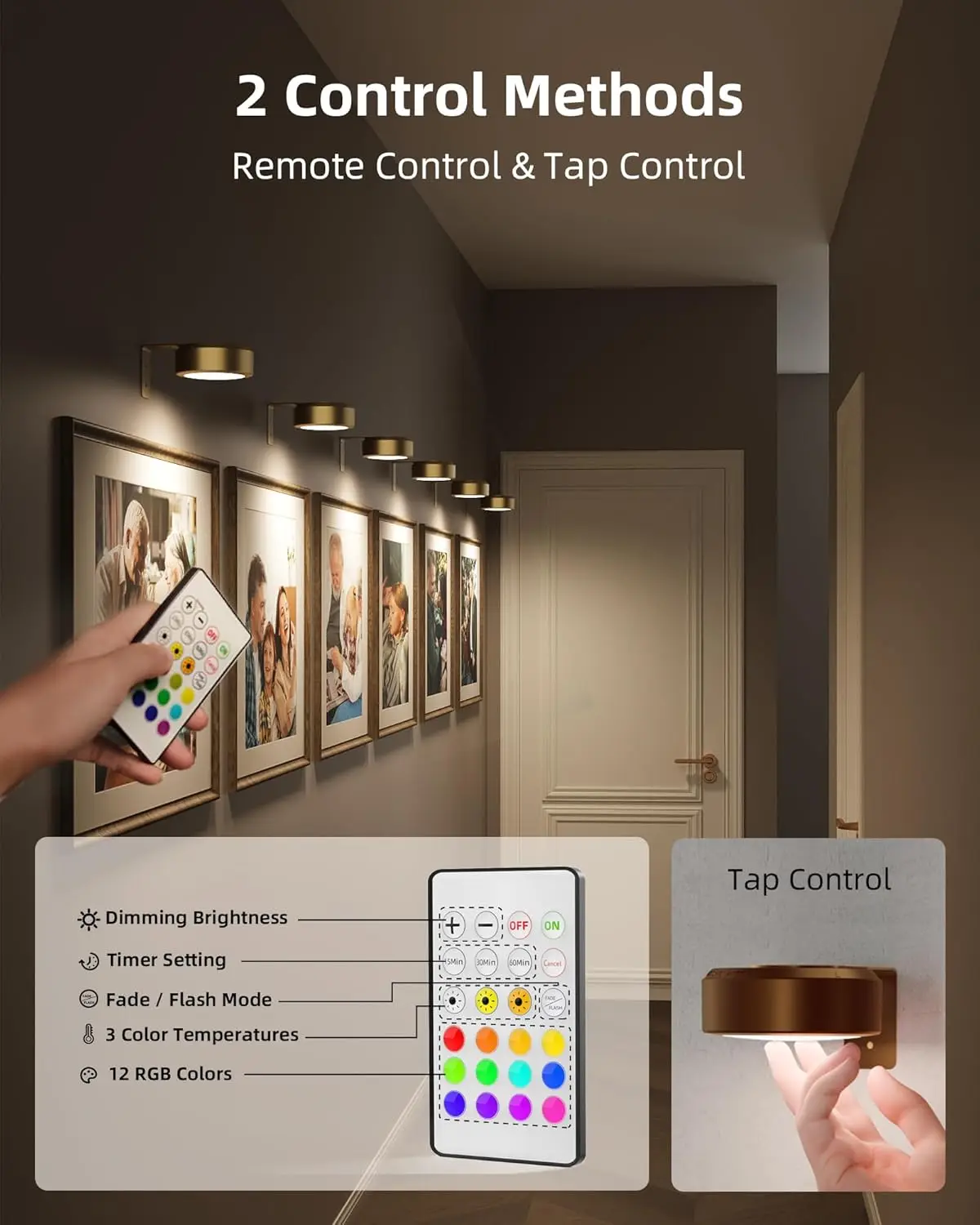 2000毫安可充电壁灯3色温度12 RGB远程可调调光定时器磁性海报灯壁灯