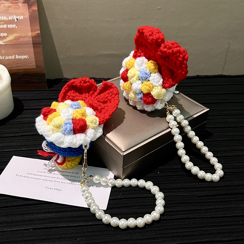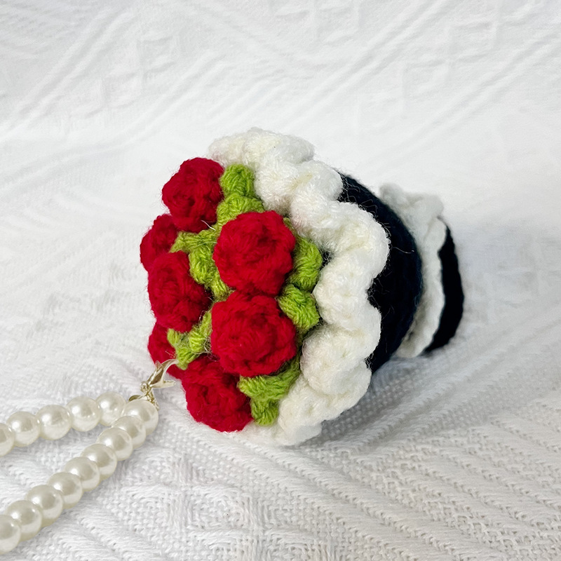 finished product bridal bouquet-black red flower + pearl lanyard